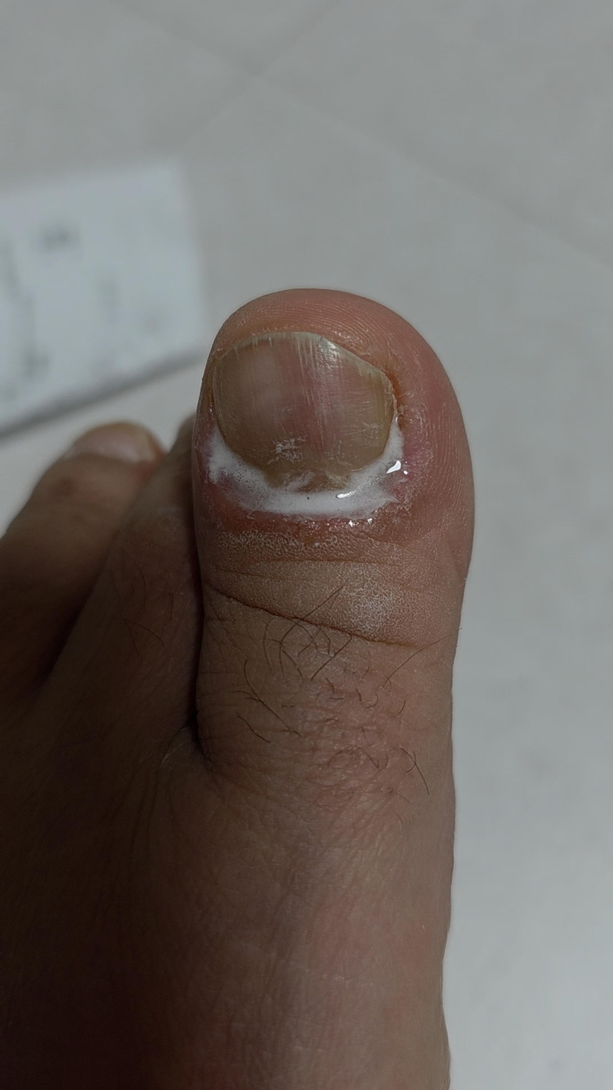 왼쪽엄지발톱이 상해서 발라보니 보글보글 거품이 올라왔습니다