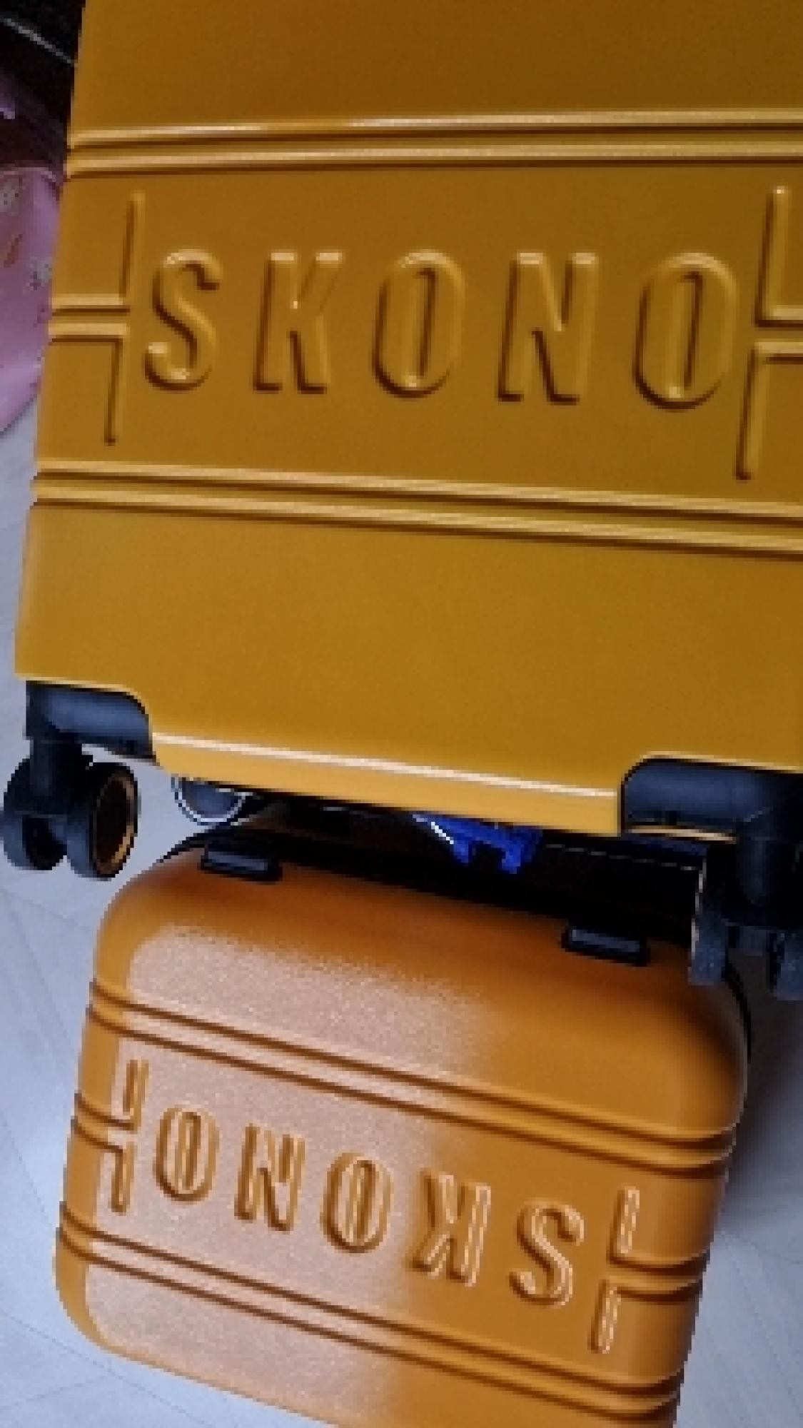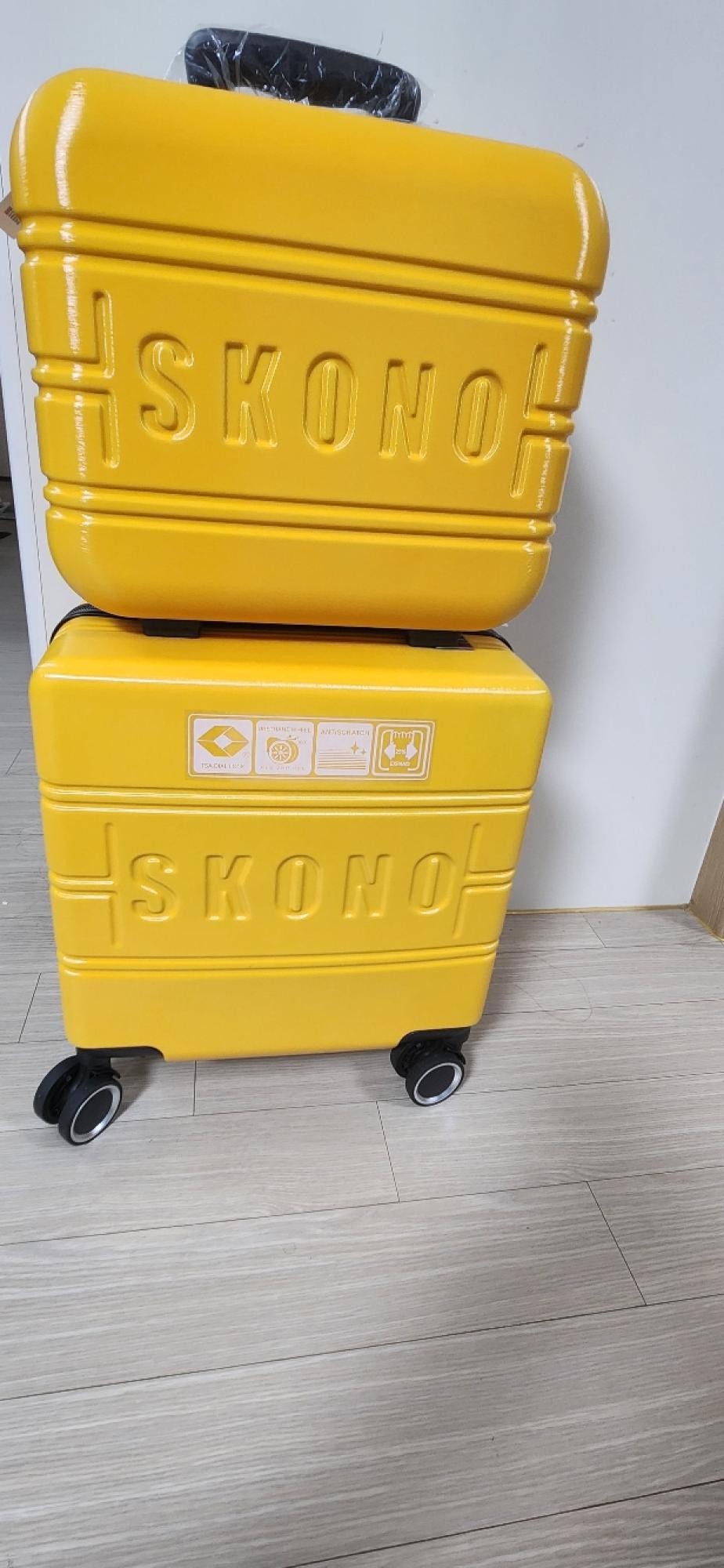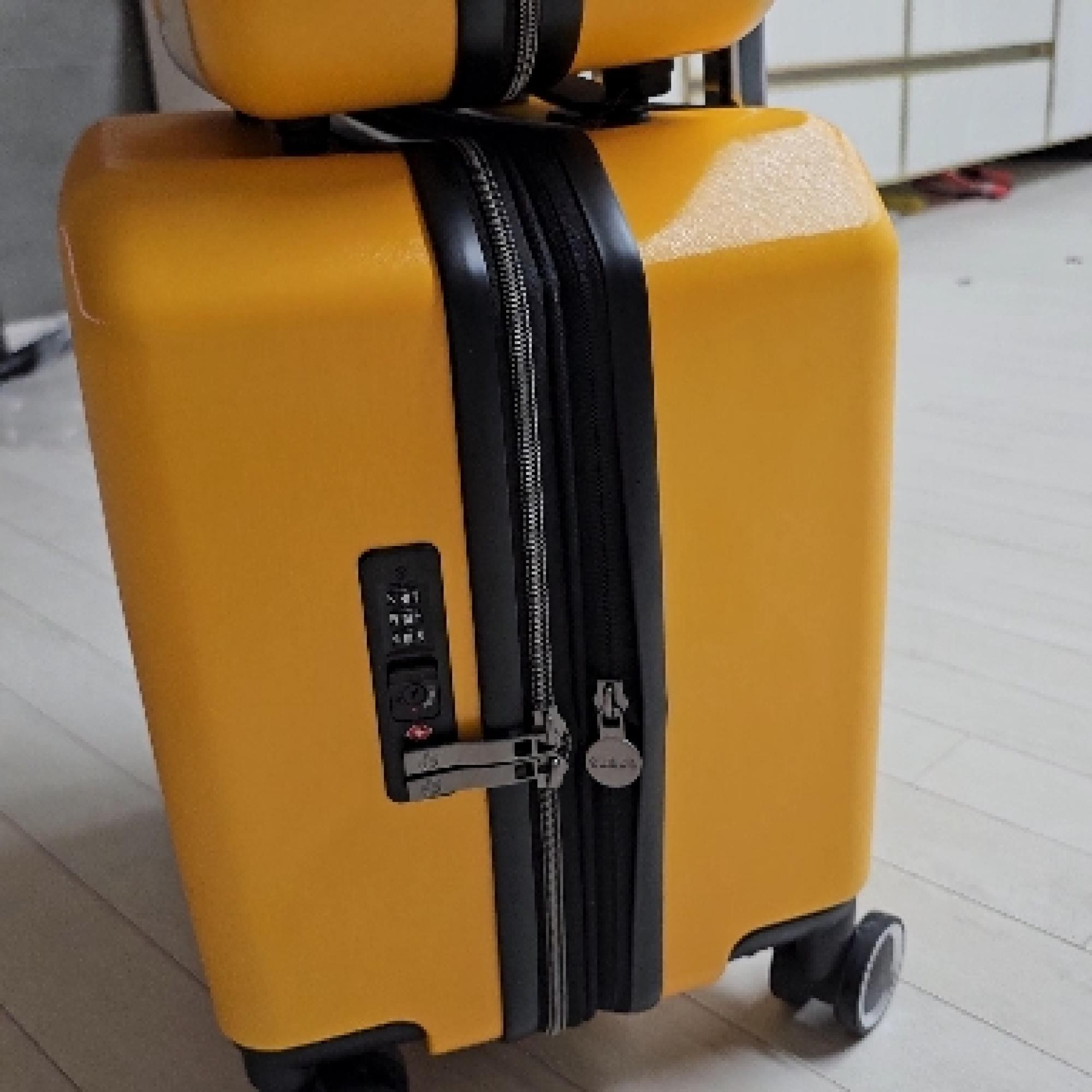 아메리칸투어리스트 기내용캐리어가 고장나서 캐리어 검색하다 구입하게 되었어요 찐노랑색이고 견고함은 보통인 것 같고 가볍네요 작은 가방도 세트구성이라 좋네요 18인치라고 해도 확장형이라 수납도 많이 할 수 있어요 검정색으로 긁힌 것처럼 묻어있어 물티슈로 닦으니 깨끗해졌어요 빠른 배송 감사합니다~