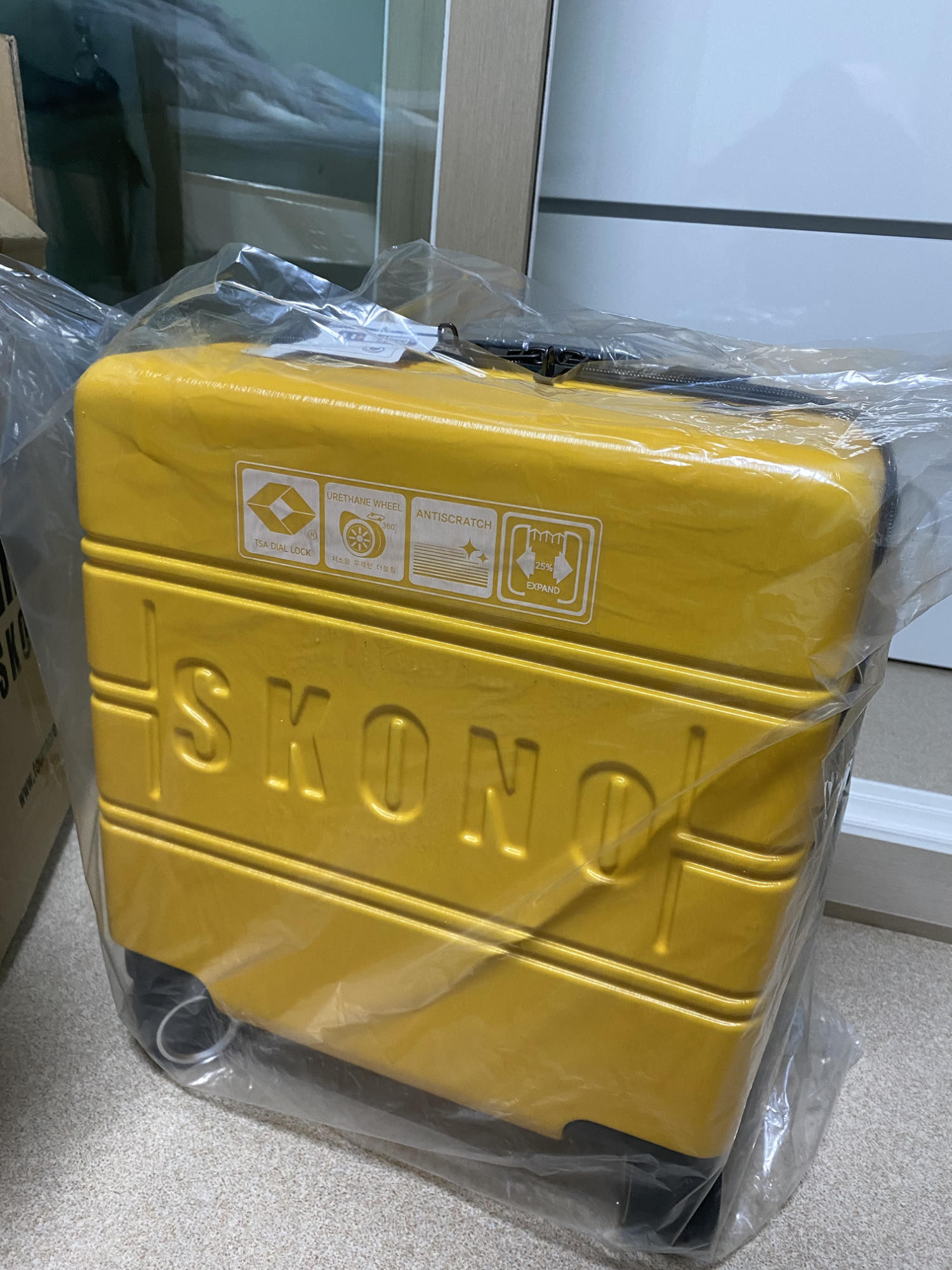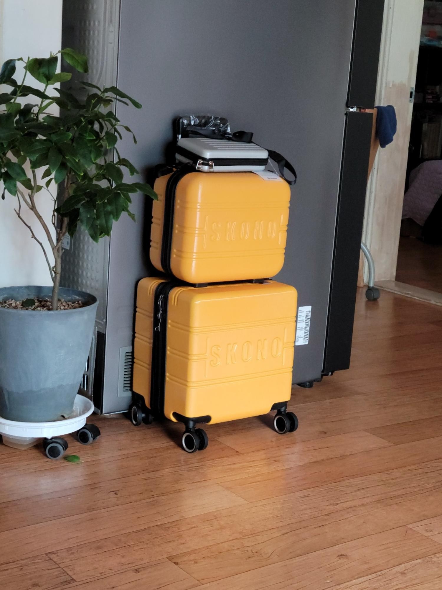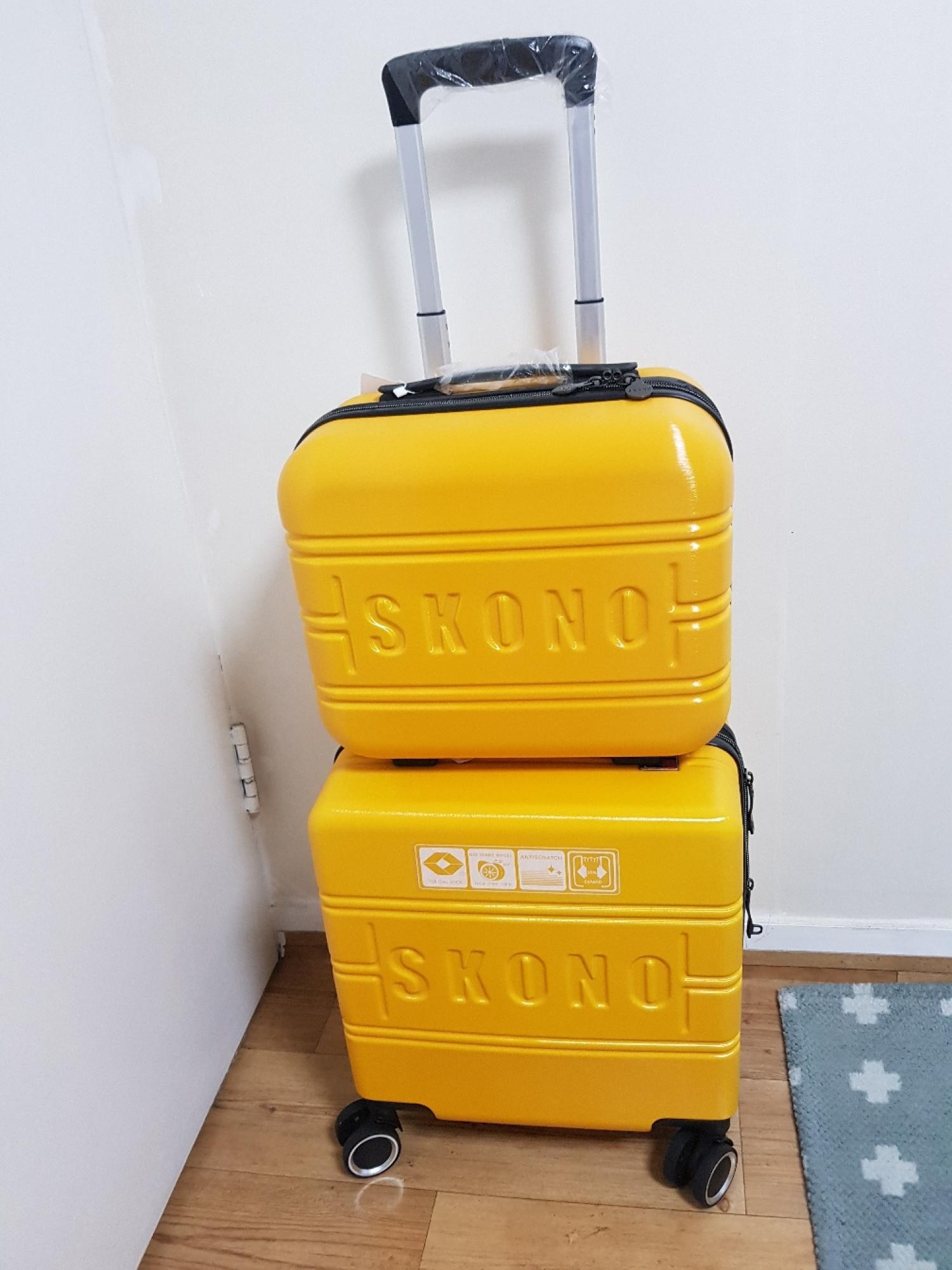 아메리칸투어리스트 기내용캐리어가 고장나서 캐리어 검색하다 구입하게 되었어요 찐노랑색이고 견고함은 보통인 것 같고 가볍네요 작은 가방도 세트구성이라 좋네요 18인치라고 해도 확장형이라 수납도 많이 할 수 있어요 검정색으로 긁힌 것처럼 묻어있어 물티슈로 닦으니 깨끗해졌어요 빠른 배송 감사합니다~