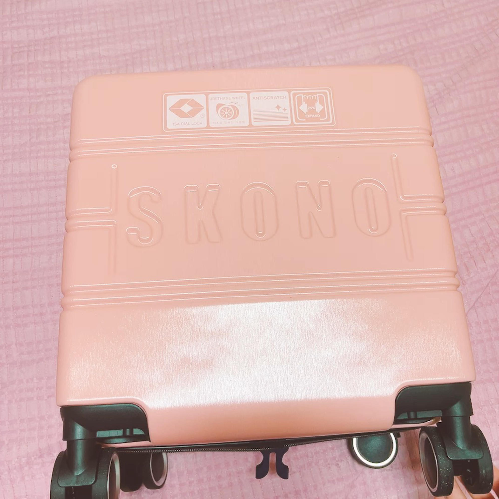 2. 장점: 색상(화면과 동일, 코랄핑크 느낌, 캐리어랑 레디백 사이에 색상차이 X), 고급스러움(바퀴, 매립형 잠금장치, 소재)