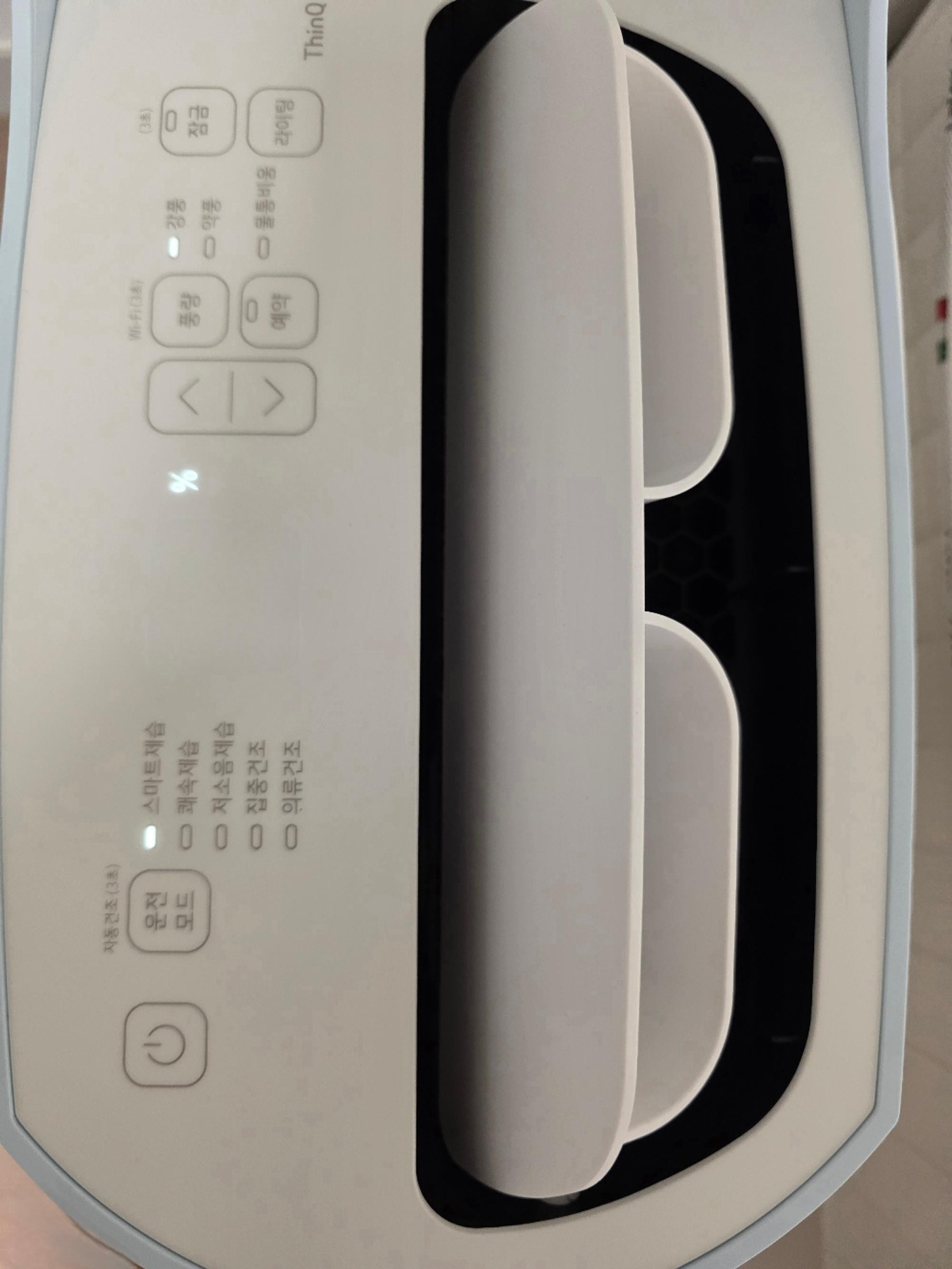 스마트제습이.강풍에서 저소음으로 바꿔보니 설정이 약풍으로 바뀌네요.