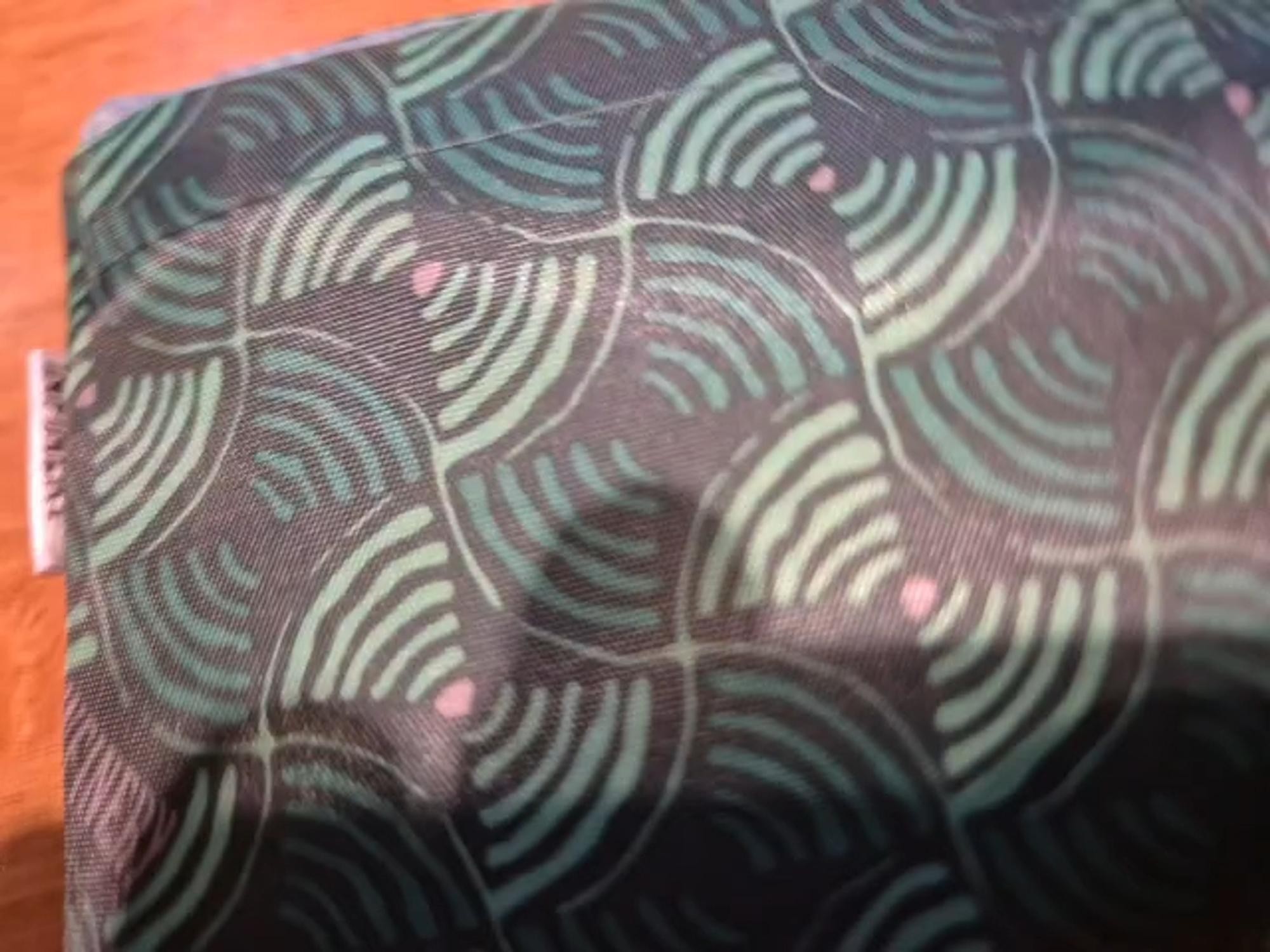 짙은 초록색 무늬의 장바구니에요