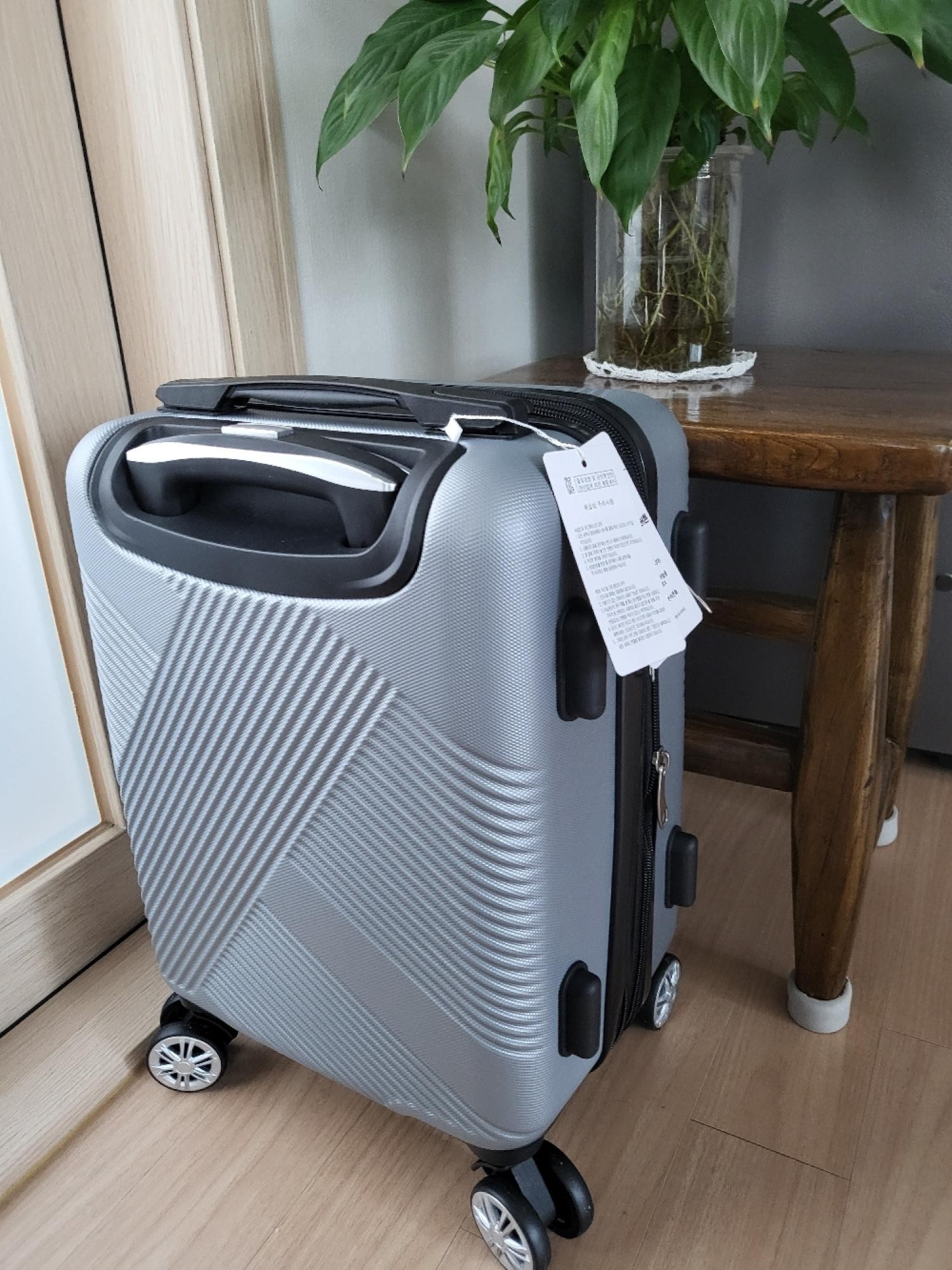 작은 캐리어가 필요해서 샀어요. 확장형이어서 그런가 일반 20인치 캐리어보다는 큰 느낌이에요. 손잡이가 약한 듯 하나 착한 가격에 꽤 쓸만한 캐리어 같습니다.