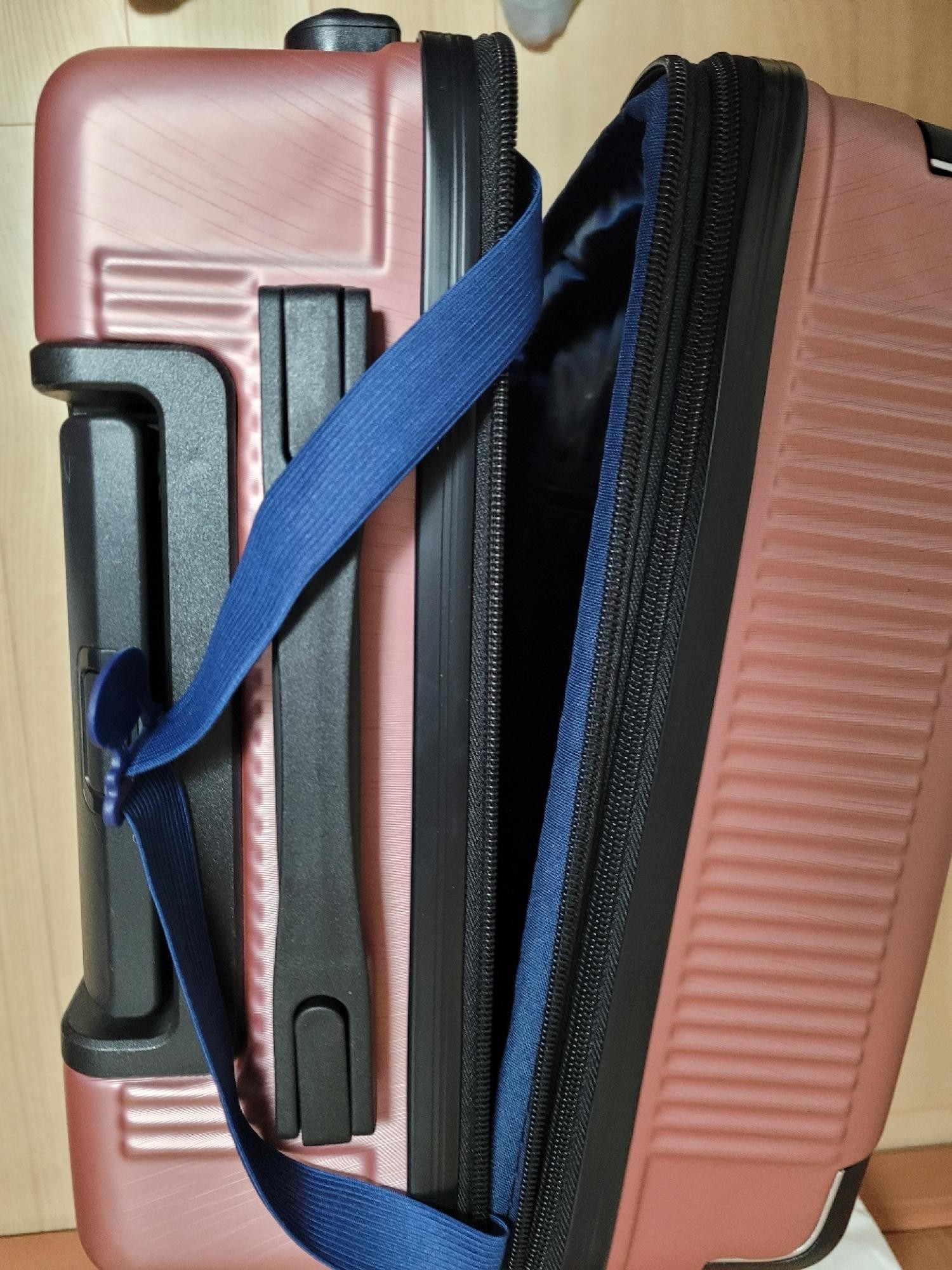 로즈골드 색상은 처음 구매해 봤는데 정말 예쁘고, 색감이 너무 고급져 보여요~ㅎㅎㅎ 마감처리 잘 되어 있고, 여닫을때 지퍼도 부드럽고, 바퀴도 자유롭게 잘 굴러가는데, 다만 아쉬운 점이 있다면 손잡이 부분이 좀 흔들림이 있고, 고정되는 느낌이 아니여서 그런지 튼튼해 보이지가 않아요.. 써봐야 알겠지만 가격대비 전체적으로 깔끔하고 만족스러운 여행가방이에요^^