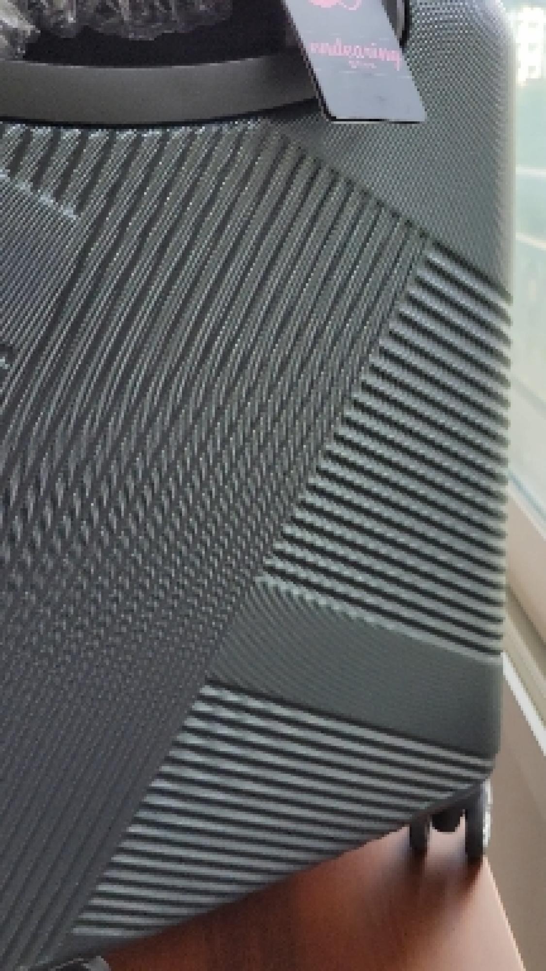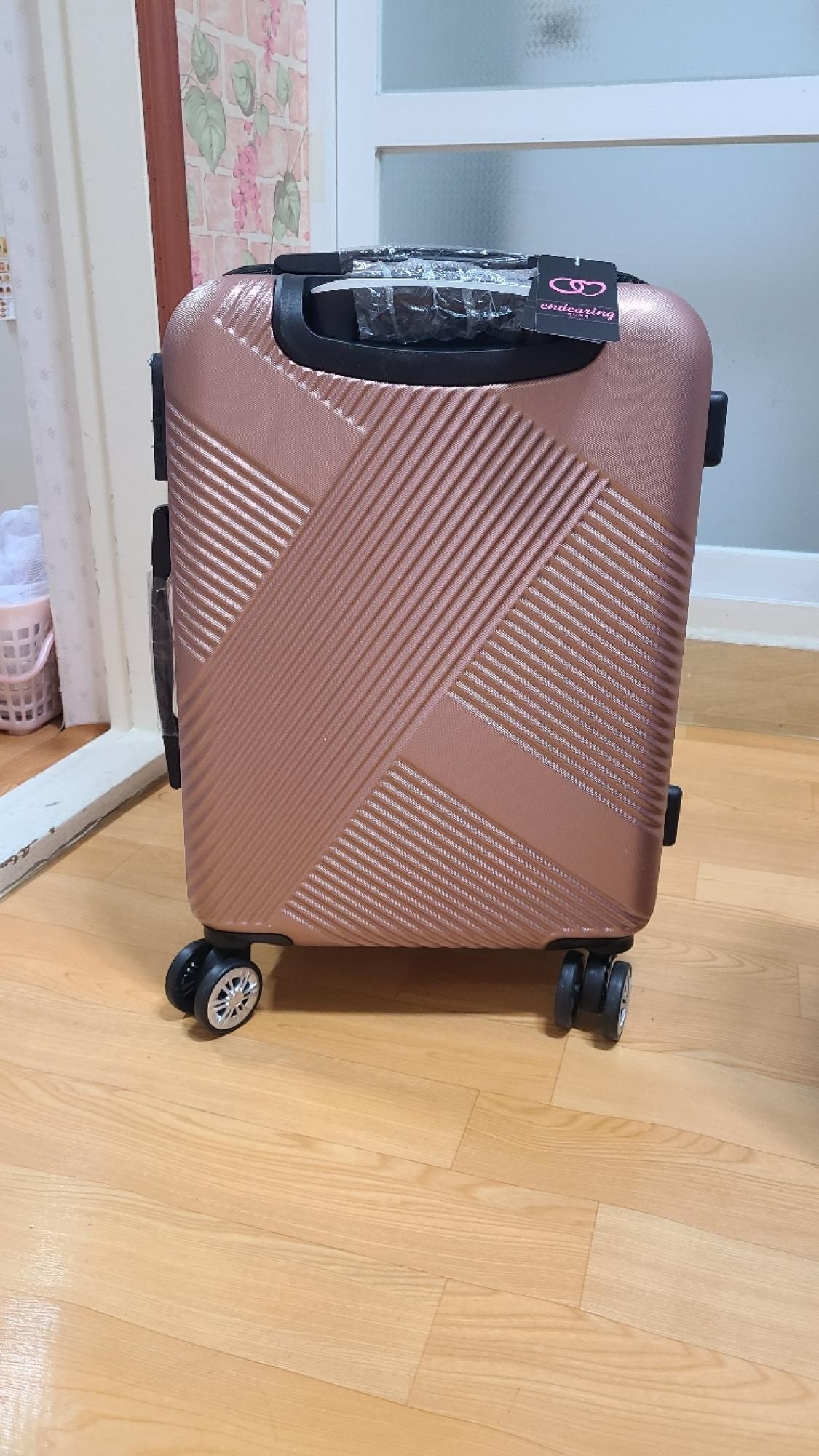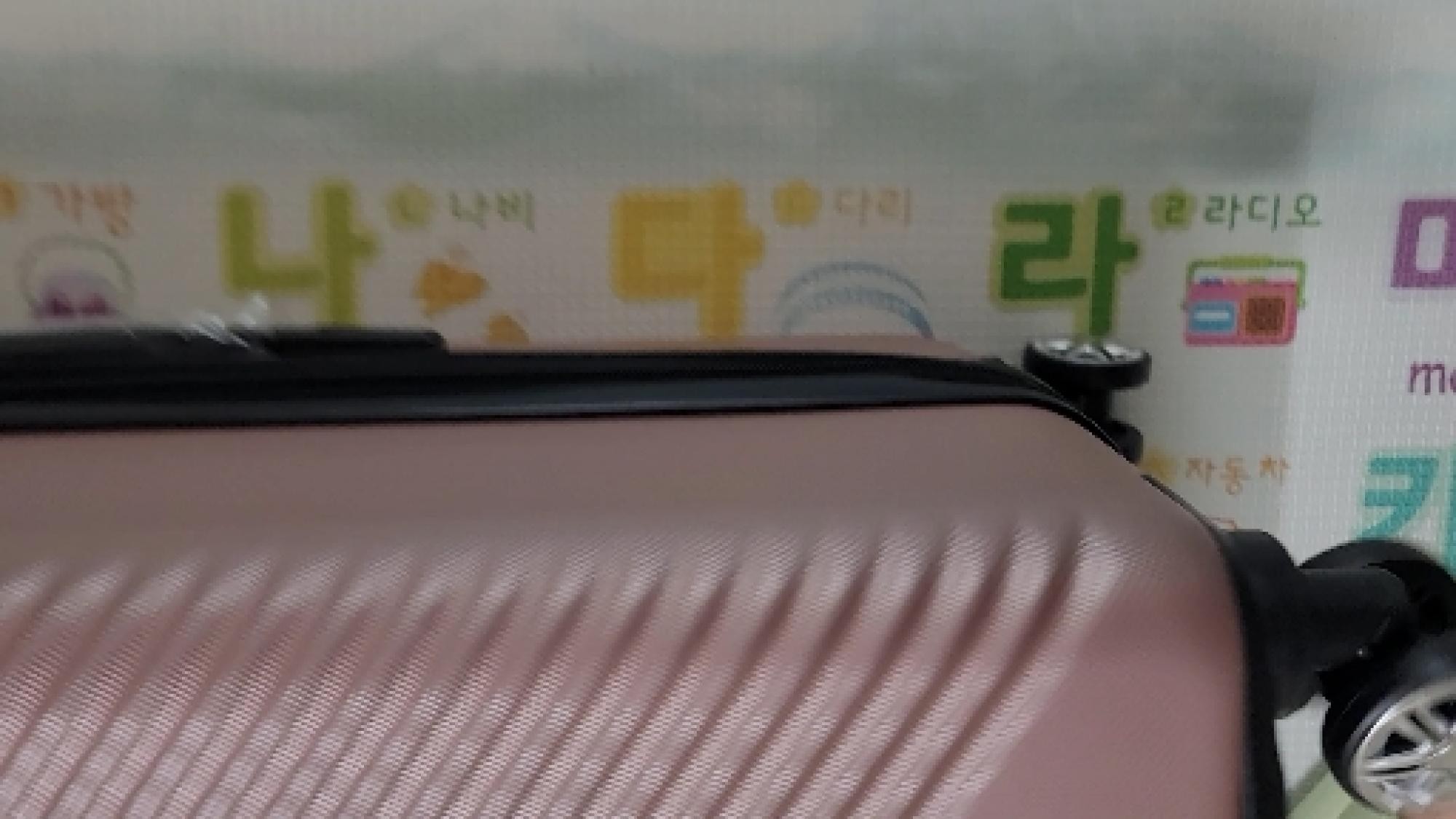 짙은 핑크색 사진보고 골랐는데 딱 생각하던 색상이에요. 사선으로 된 캐리어 무늬도 적당하게 튀지않고 이쁜 느낌이라 여행갈 때 잘 사용할 듯 합니다.