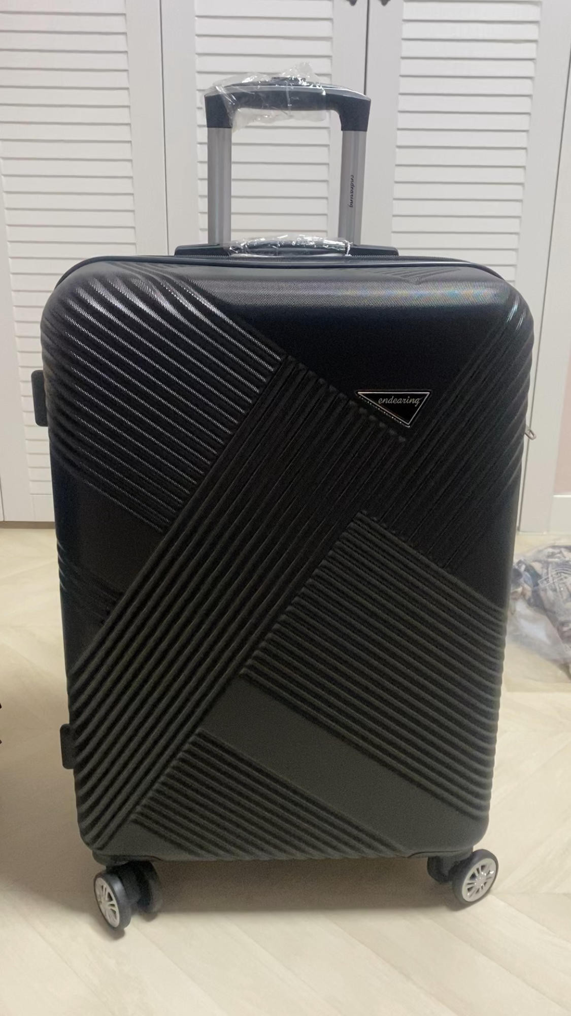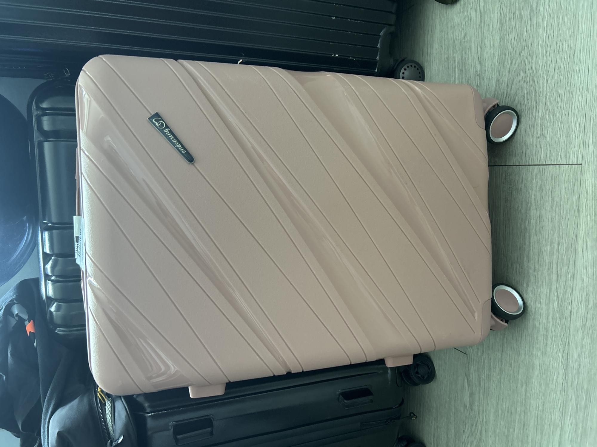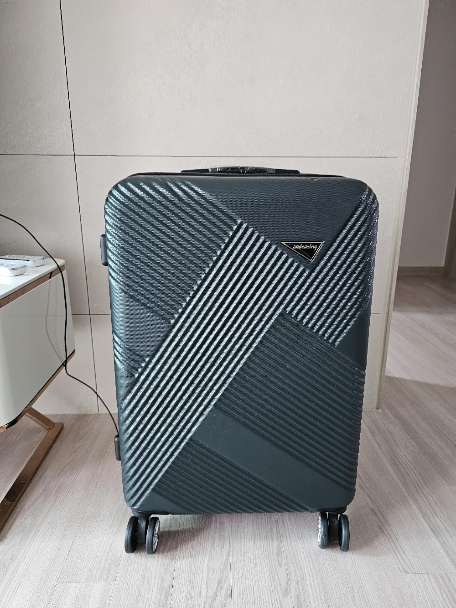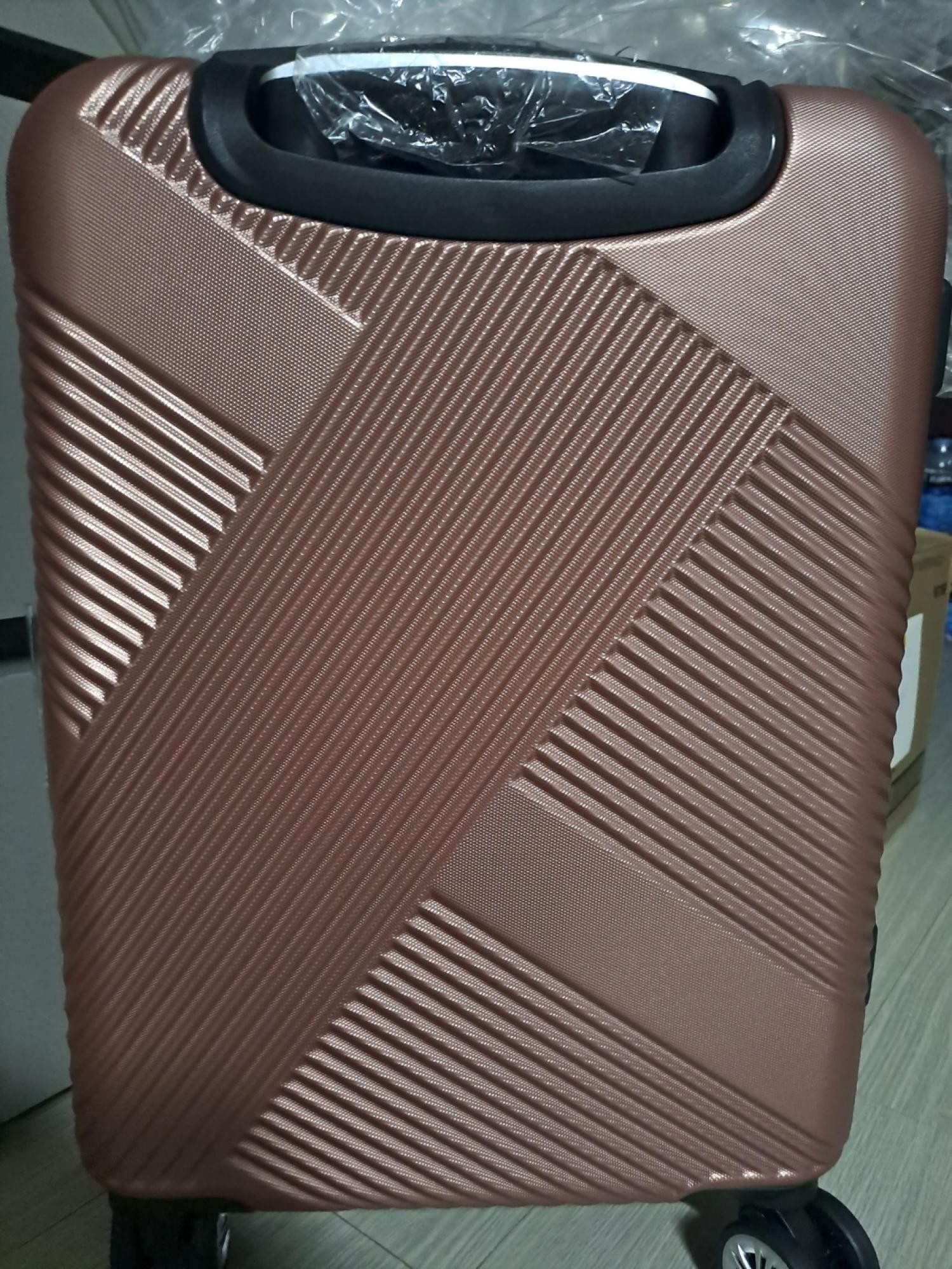 짙은 핑크색 사진보고 골랐는데 딱 생각하던 색상이에요. 사선으로 된 캐리어 무늬도 적당하게 튀지않고 이쁜 느낌이라 여행갈 때 잘 사용할 듯 합니다.