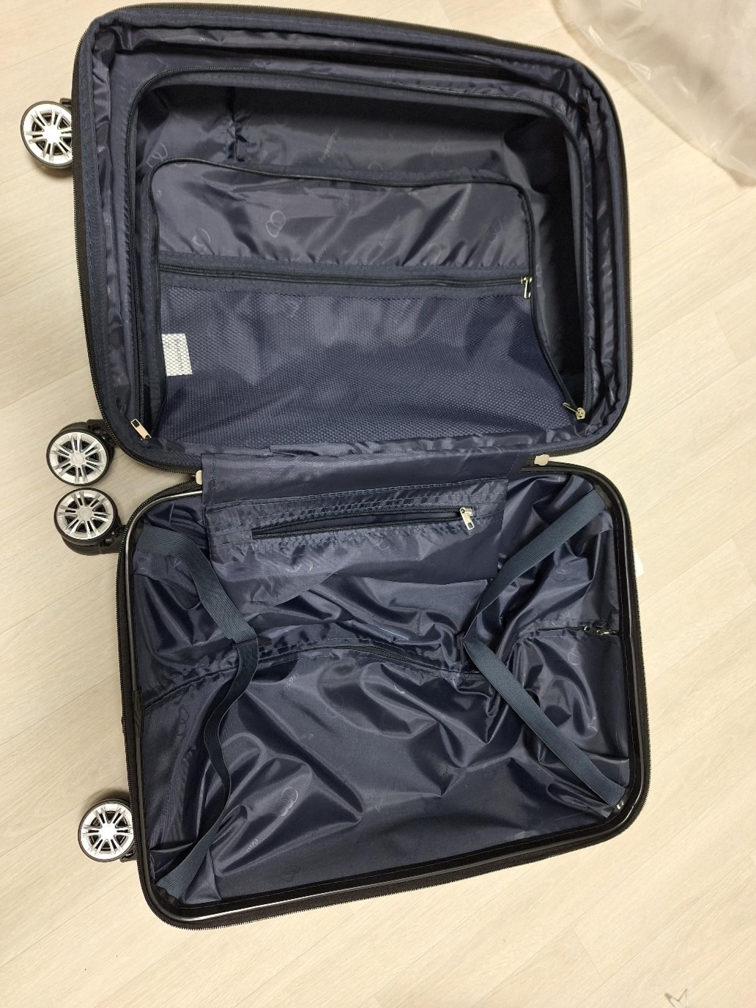 너무 크지도, 그렇다고 너무 작지도 않은 사이즈의 가방이에요~! 열어서 살펴보니 수납력도 꽤 되고, 짧은 여행에는 정말 좋을듯 싶어요.. 바퀴도 커서 튼튼해 보이고, 지퍼도 부드럽게 잘 열리네요! 색상도 고급지고, 마감처리 잘되어 있어 너무 맘에 들어요^^ 빠르고 안전한 배송 감사합니다!!!
