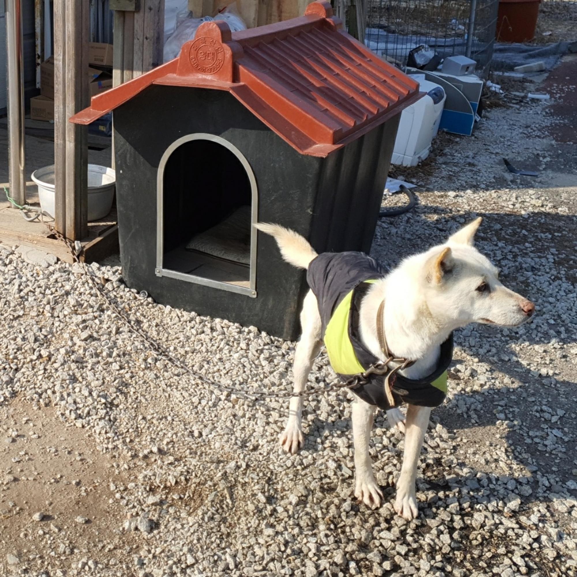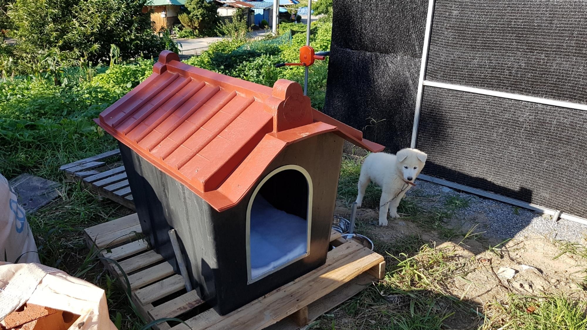 시댁에 백구한테 줬는데 며칠은 낯설어서 들어가지도 않더니 지금은 편하게 잘들어가요. 이젠 비와도 걱정없어요.