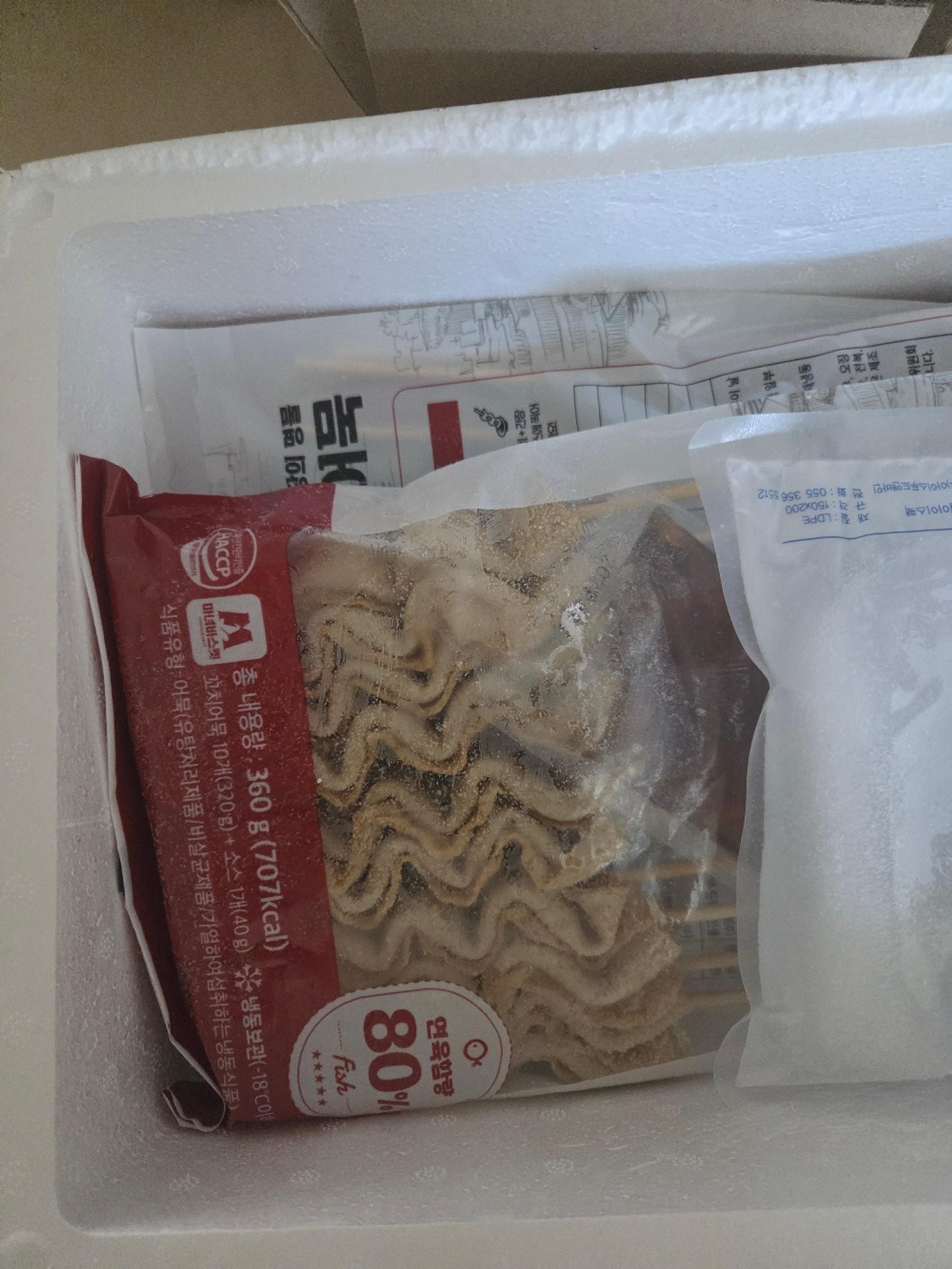 잘받았습니다. 세봉지 들어있고 얼음팩도 정갈하게 있었어요. 오늘 떡볶이랑 같이 먹어보려구요.