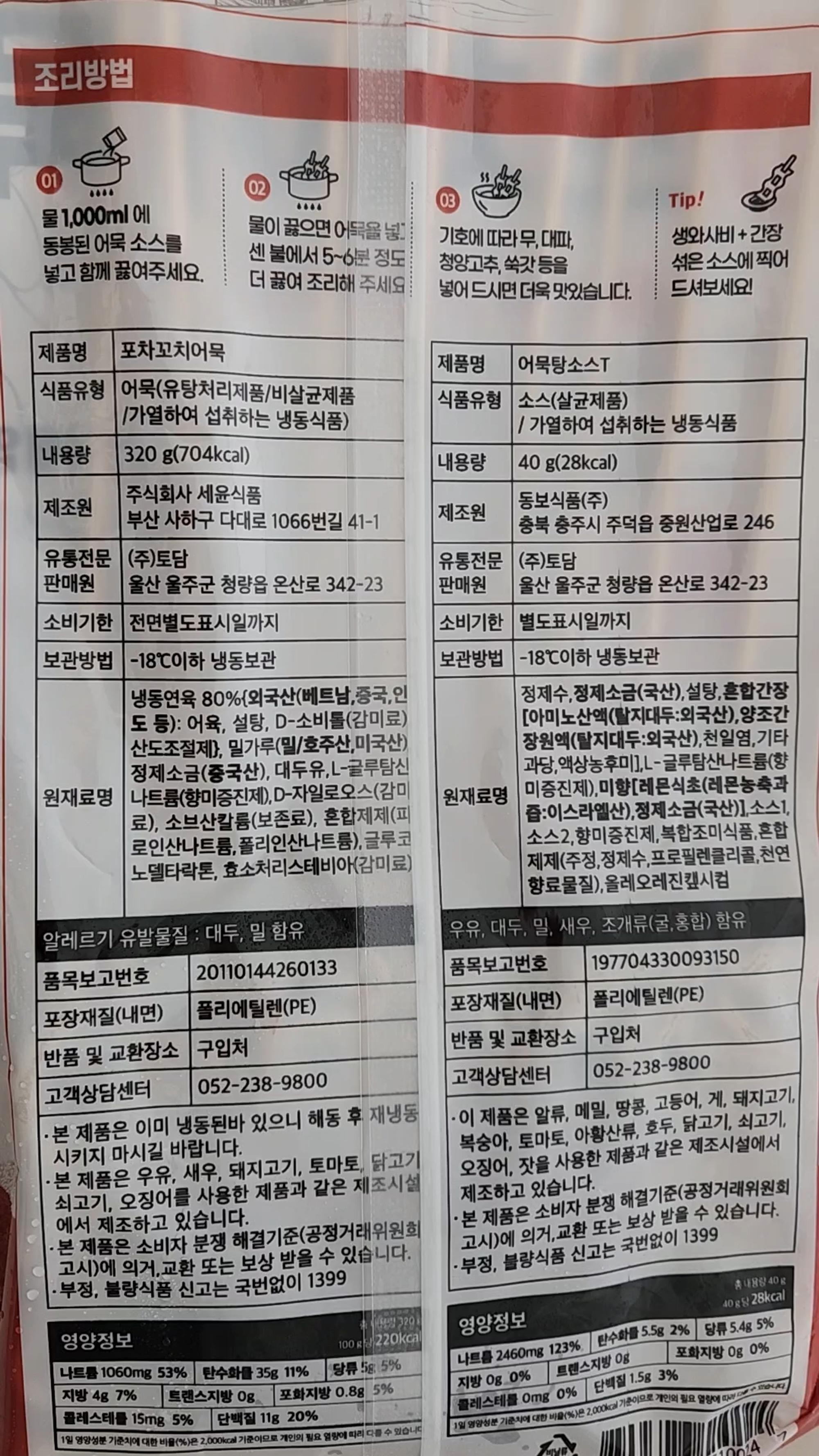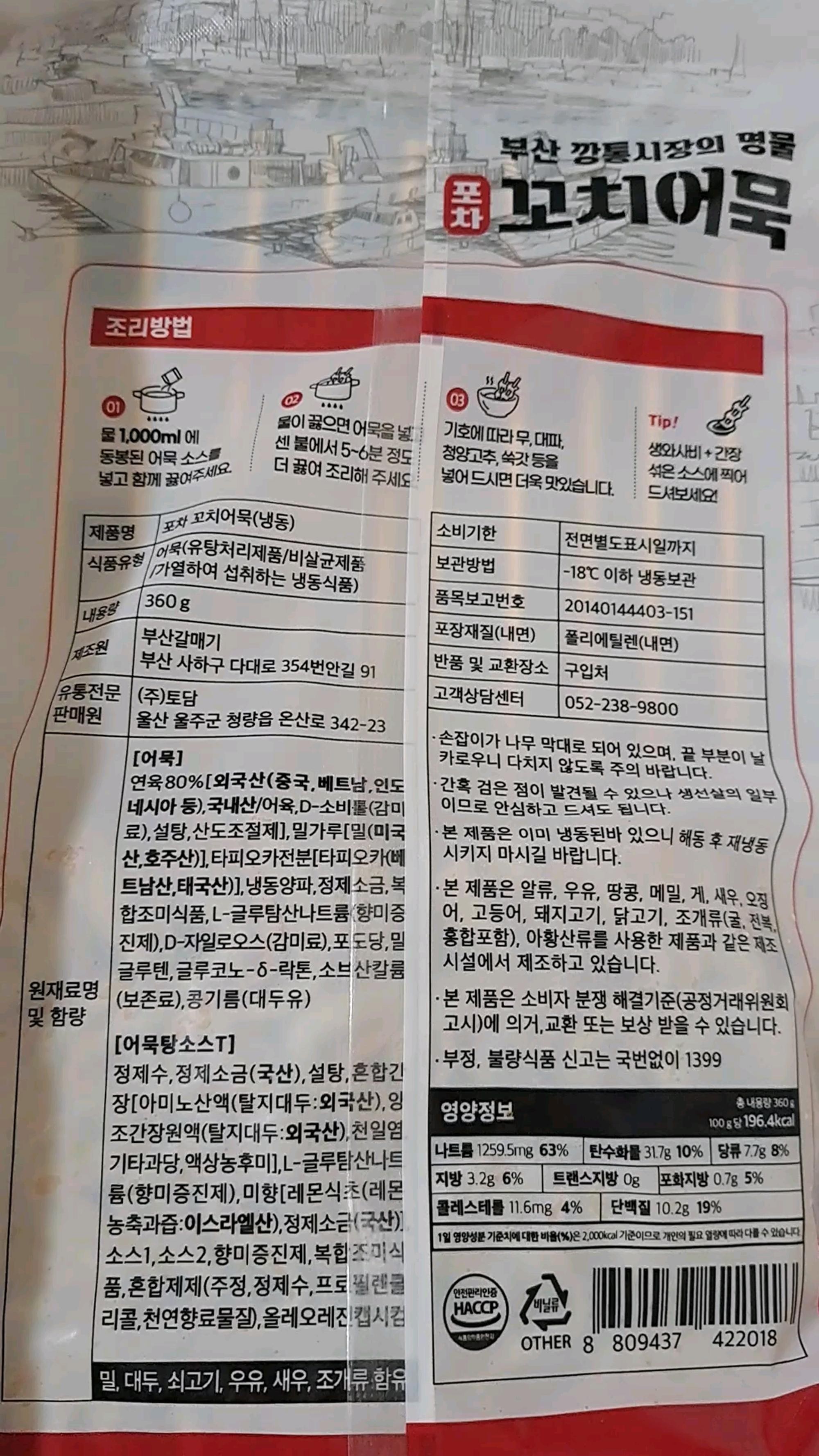 인터넷에서 비슷한 제품 많이 사 왔는데 여기 제품이 젤 맛없어요.어육이 많다는데 밀가루 어묵 맛이에요. 삼땡이나 고래땡 제품하곤 상대도 안되고 싸구려 제품 중에도 하위권 맛이에요. 보기에만 그럴싸한 짝퉁느낌