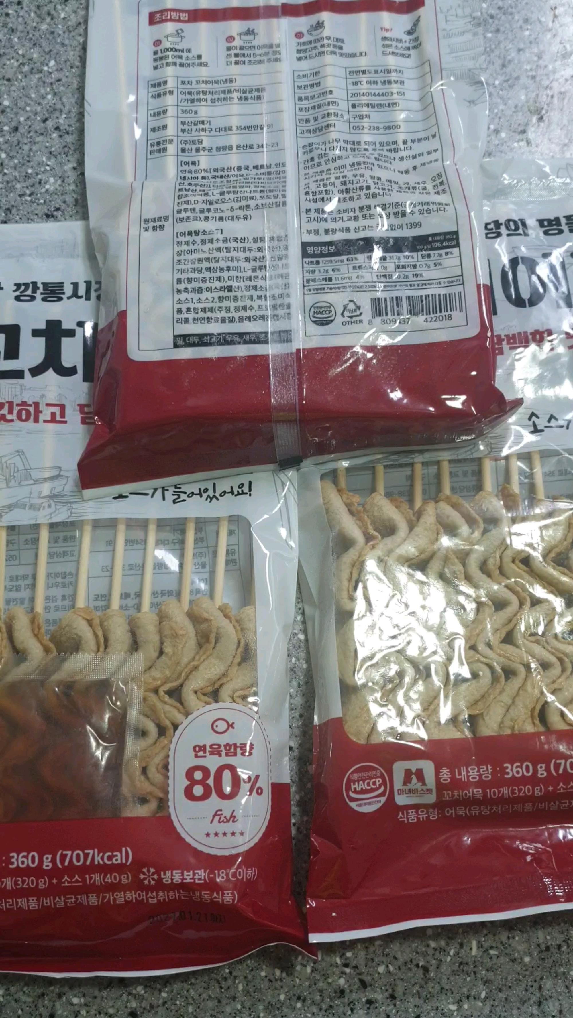 처음 주문해봤는데 어육함유량이 높아서 믿고 구매합니다. 꼬치 하나 사서 먹으면 1500원인데 이건 개당 300원 수준이예요. 가성비 좋아요.