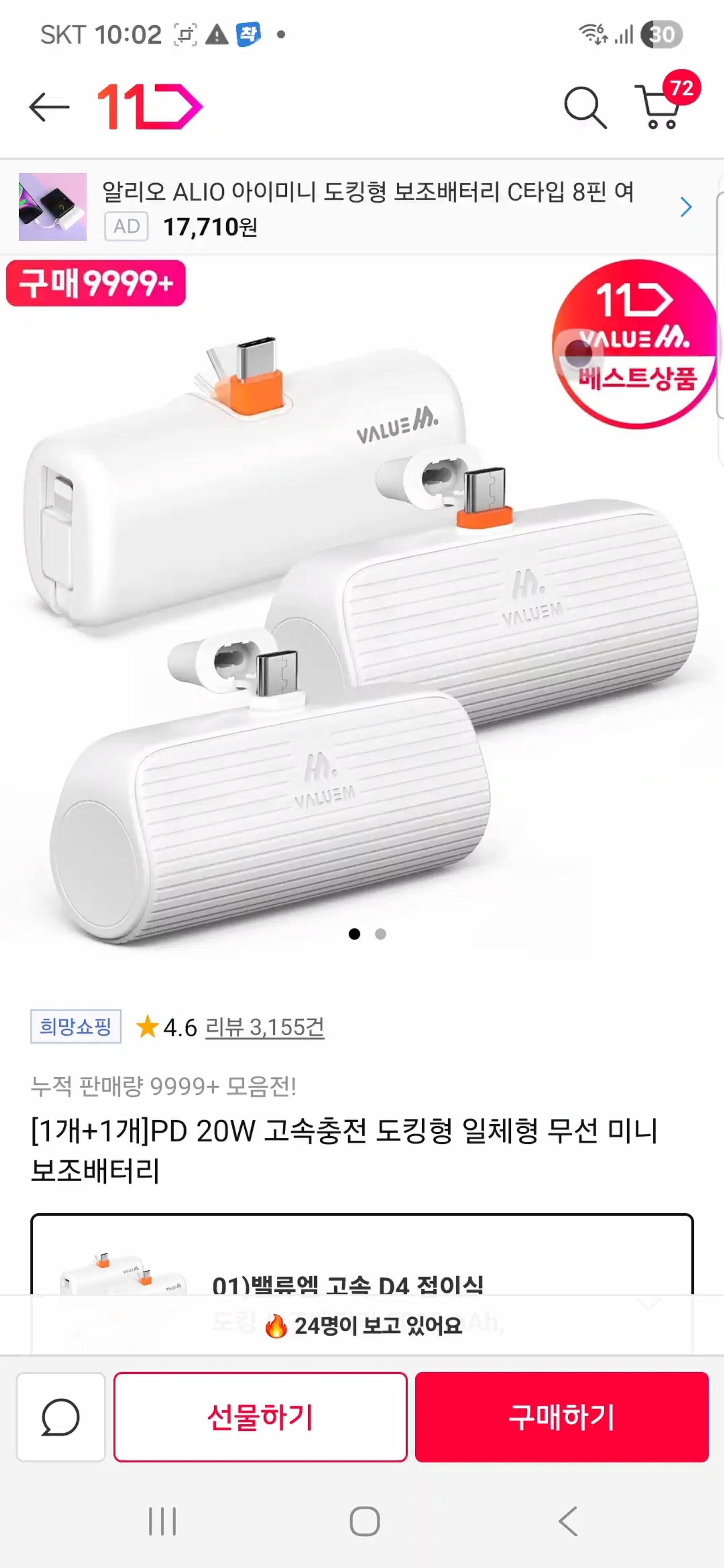 고속충전용 도킹 배터리 좋아요! 빵스펙 아니면 좋겠네요!