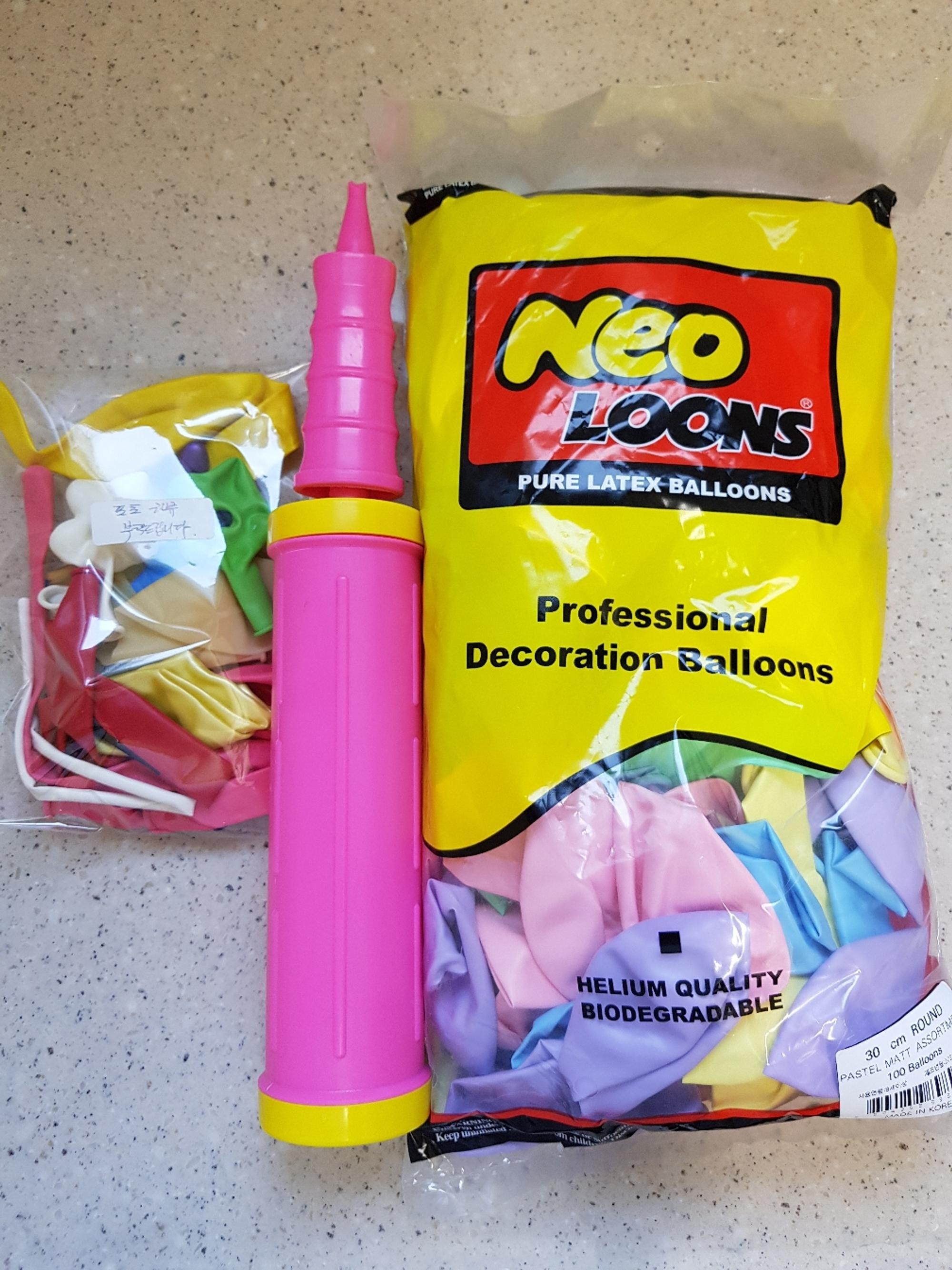 풍선 색깔이 독특하고 참 예뻐요!! 빈티지스러운 파스텔 컬러들이 많아서 오묘해요!! 손펌프도 예쁜 핑크색으로 보내주셔서 기분 좋습니다~~^^다 쓰고 재구매 할께용
