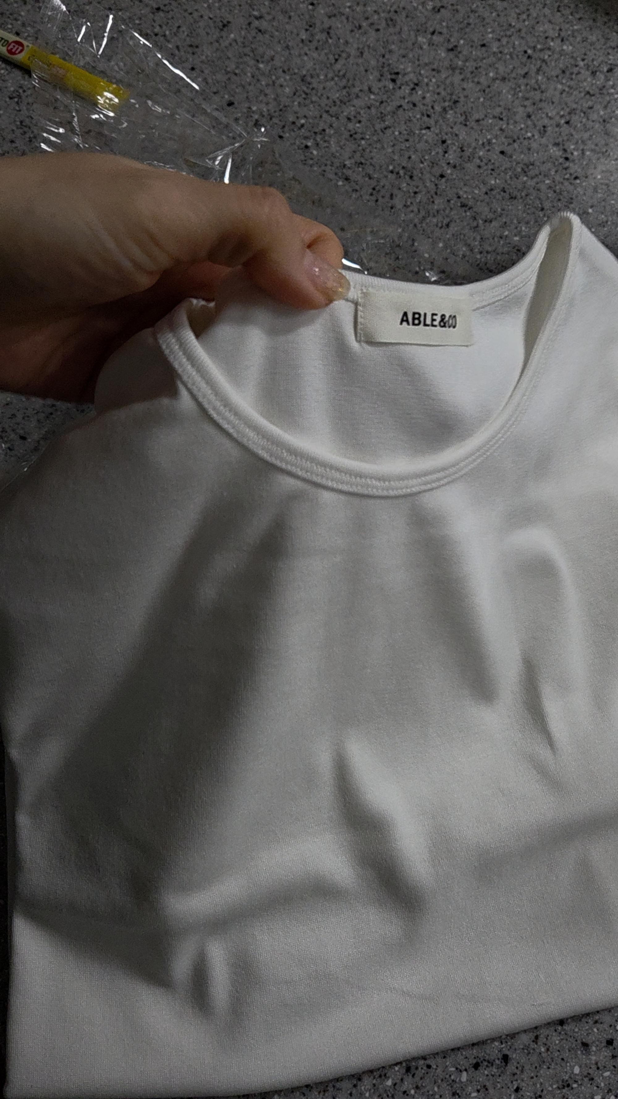 여기서 산 기본티들은 실패한 적이 한 번도 없어요 목이 너무 조이지도 않는 딱 편한 흰티예요