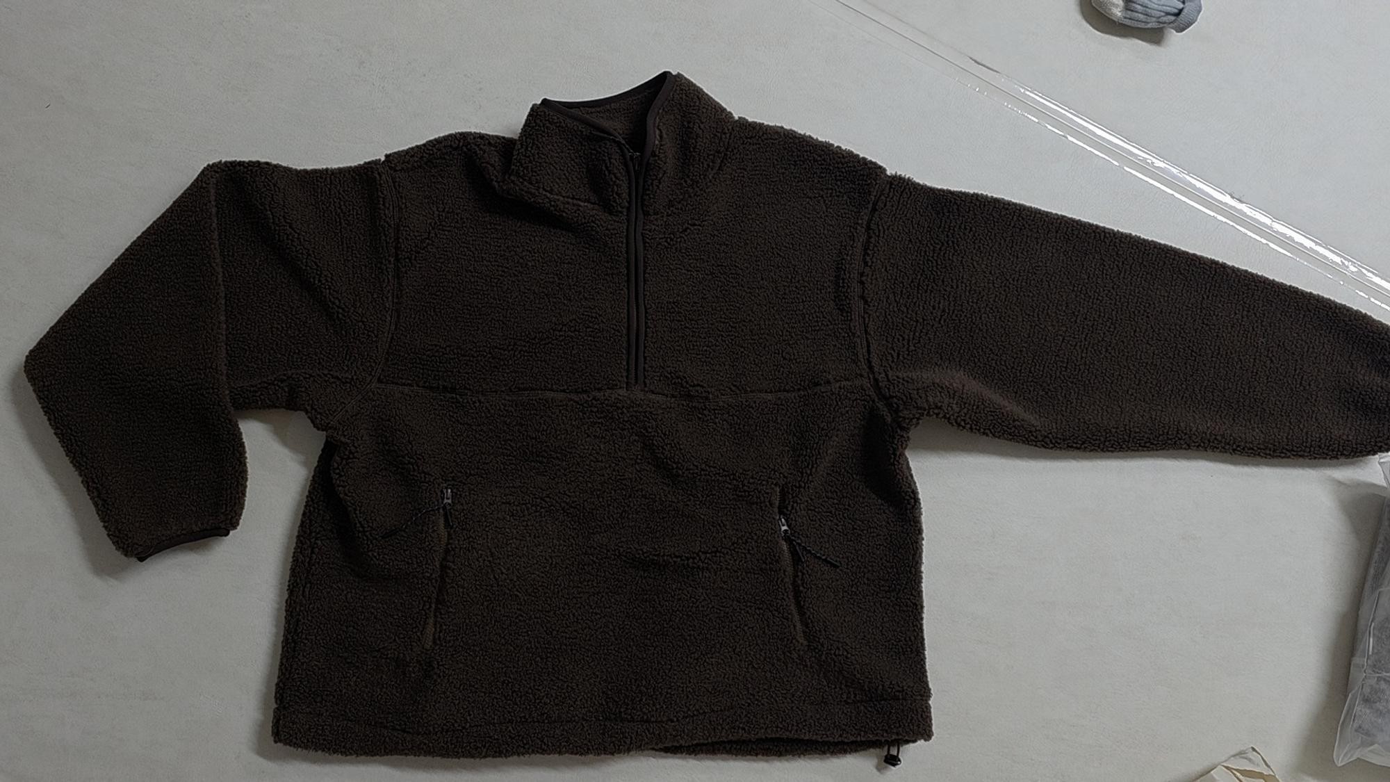아토덤블 반집업 맨투맨 브라운, 베러 아노락 버튼업 울 니트 그레이 구입했습니다. 두께 비교하려고 찍었습니다.