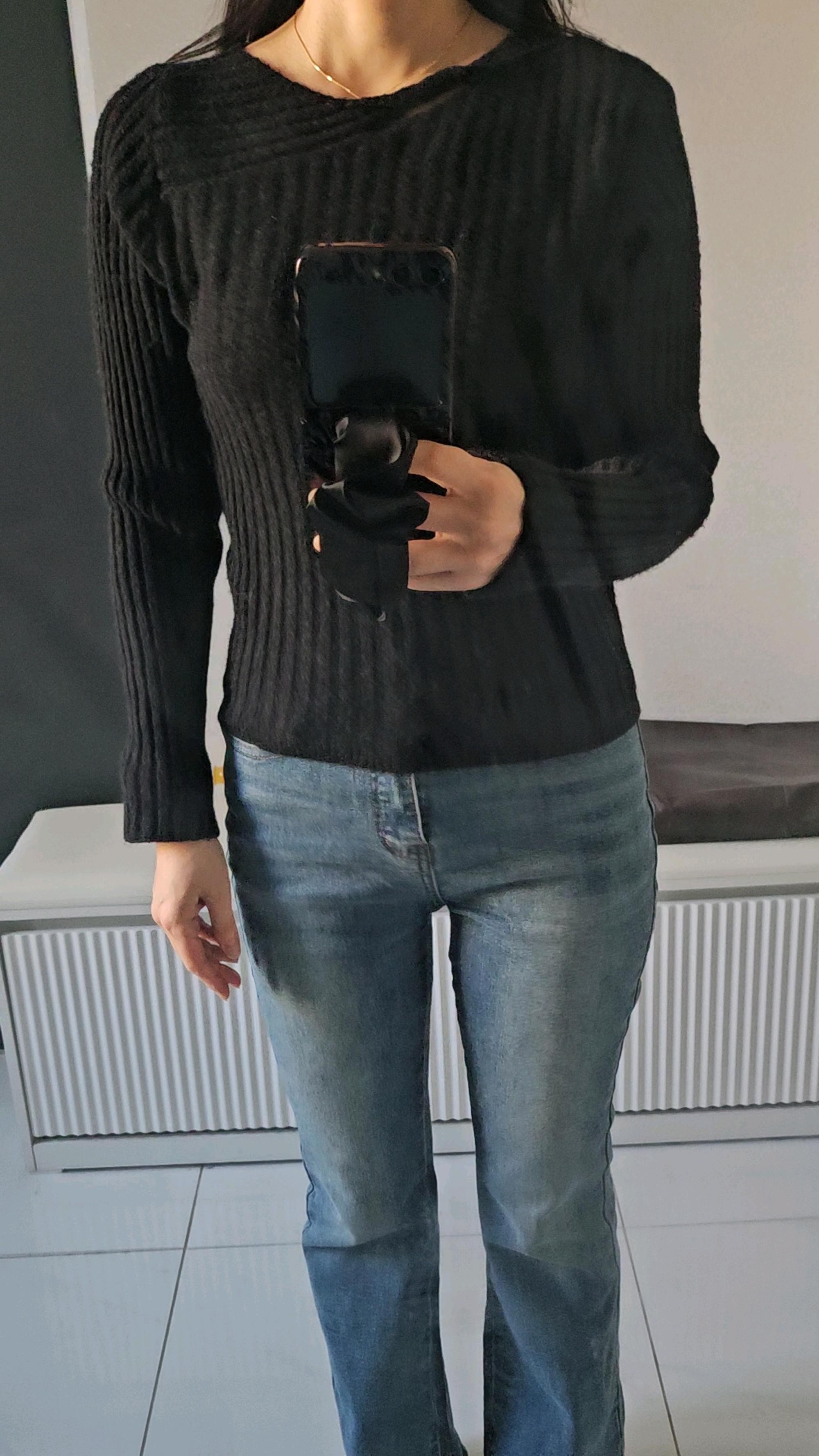 모델분의 핏과는 약간 다르지만 그래도 디자인이 괜찮은 니트티!!!