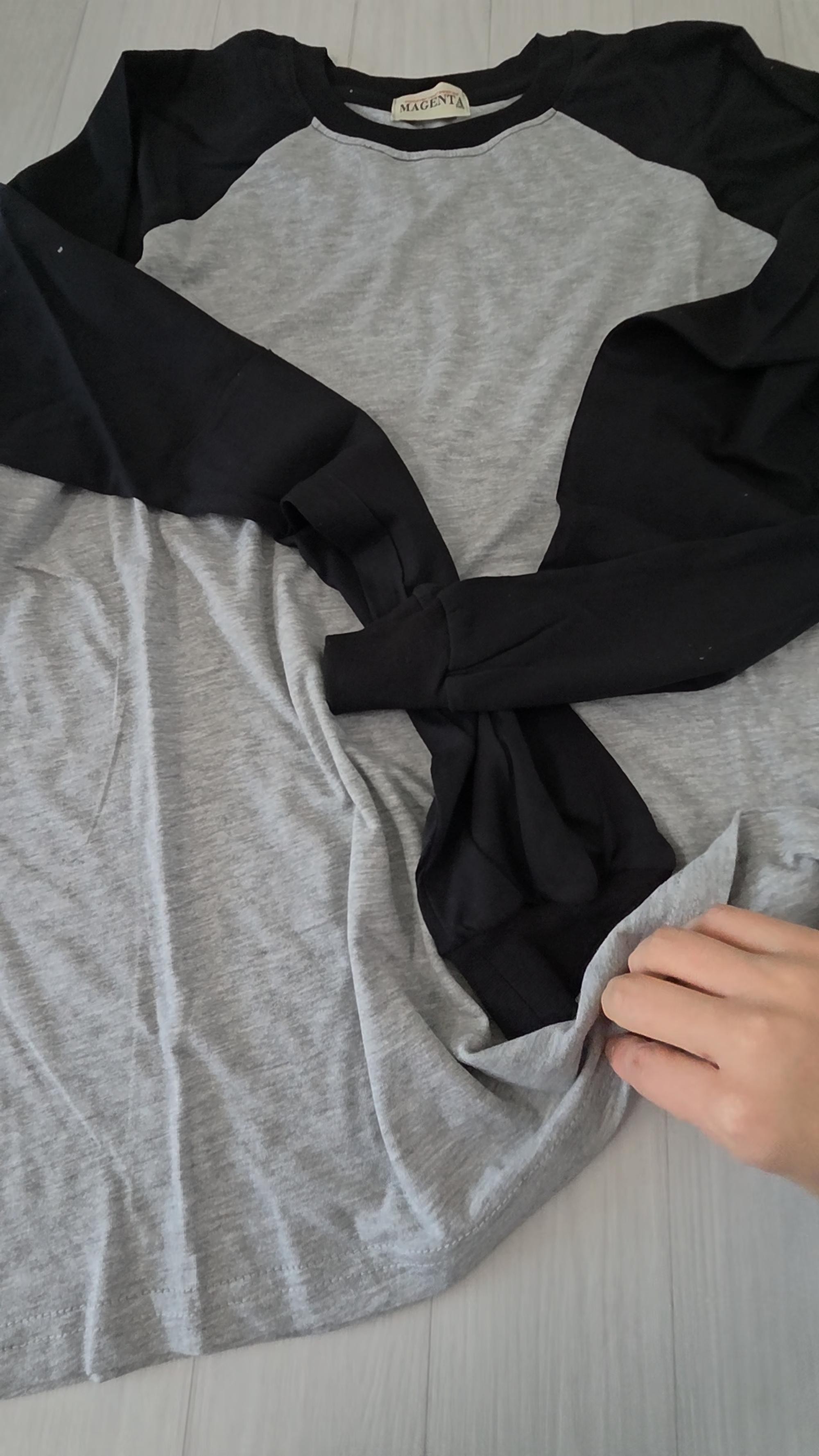 집에서 편하게 입으려고 샀어요 밑단은 티셔츠고 손목부분은 시보리 처리 되어있어 입기 좋겠어요