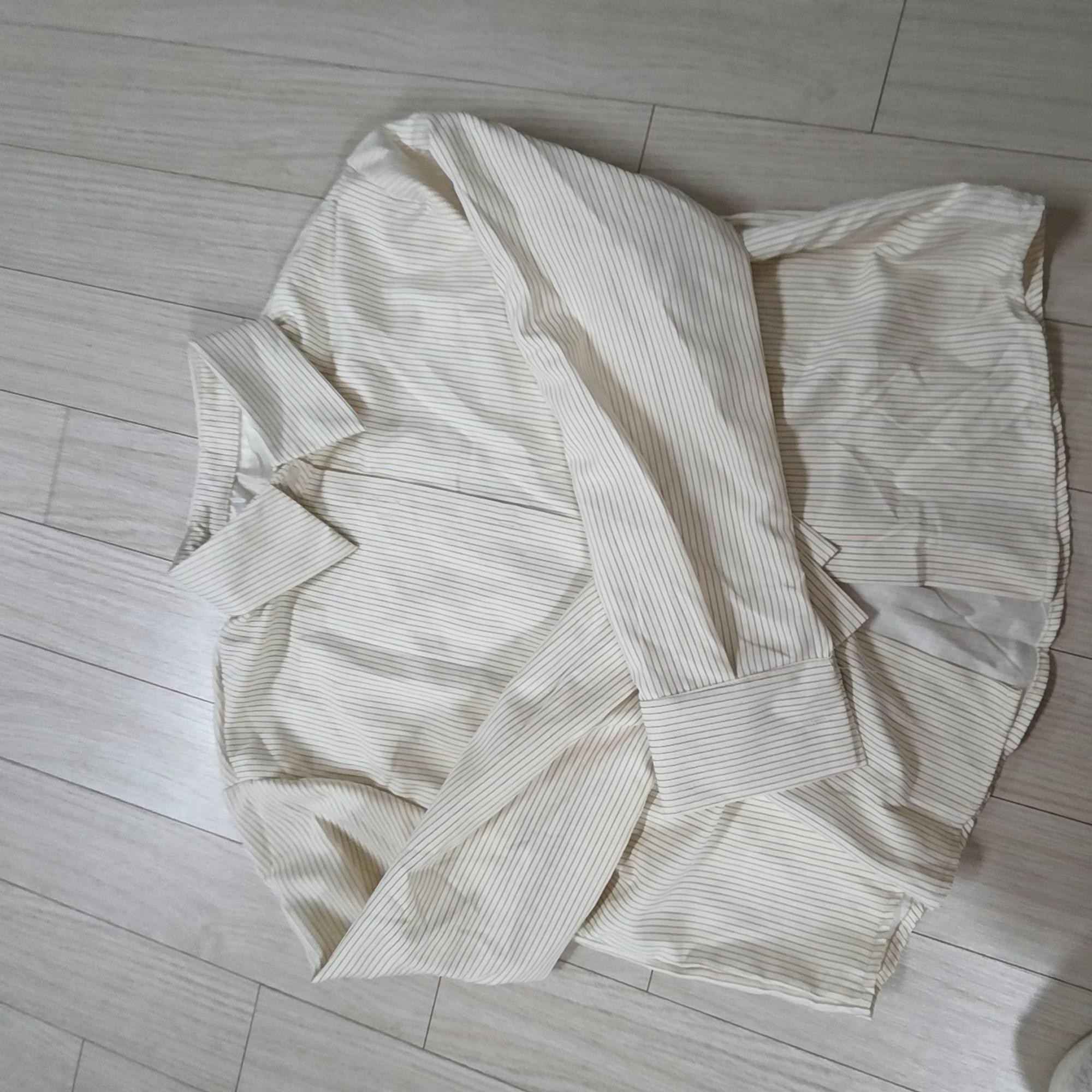 실밥 정리가 잘 안되어 있고 줄무늬가 어긋나게 마감되었네요ㅡ 맨살에 입으니 좀 까끌거려요. 이너러 입으려고 샀는데 애매해졌습니다.