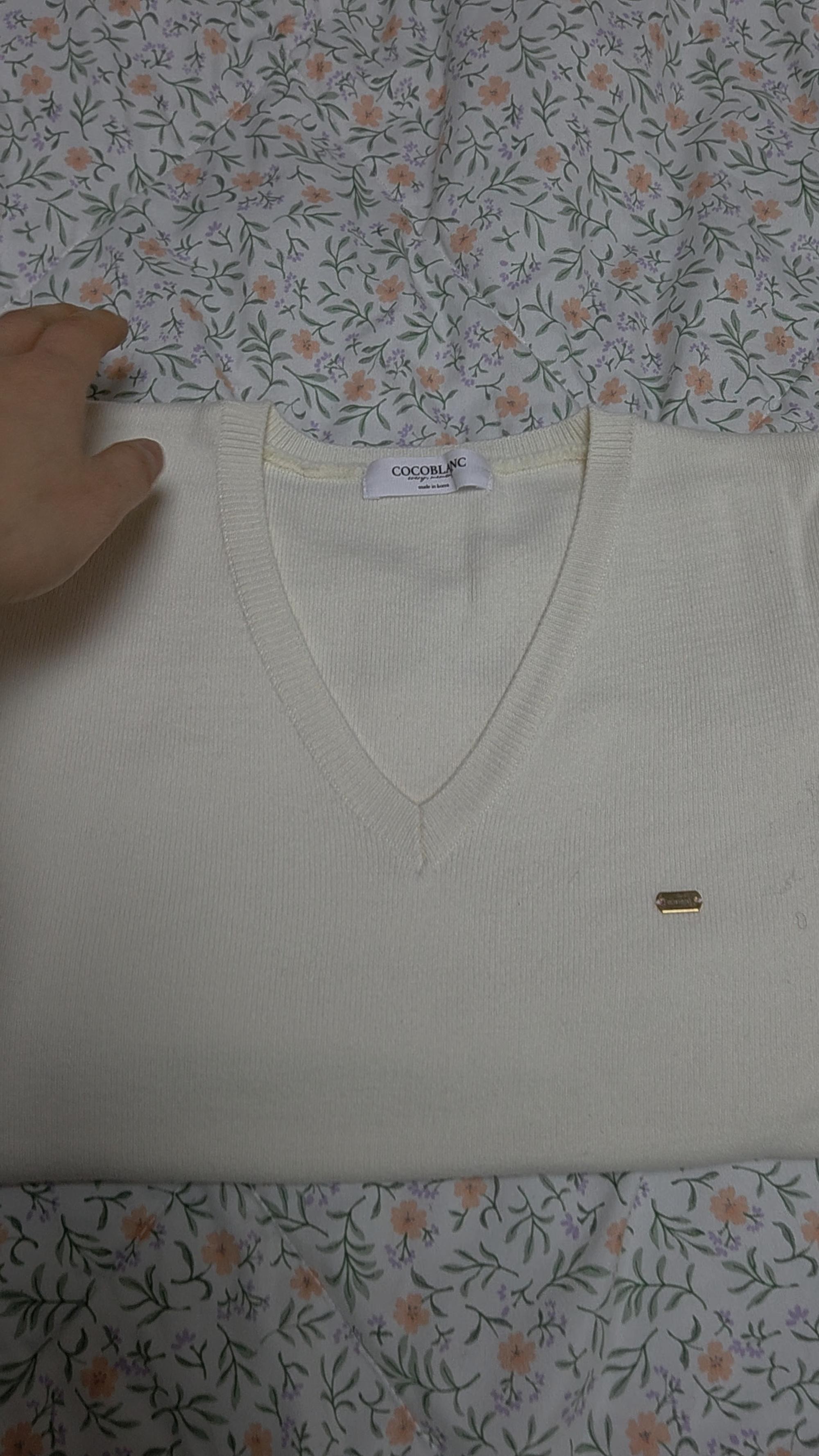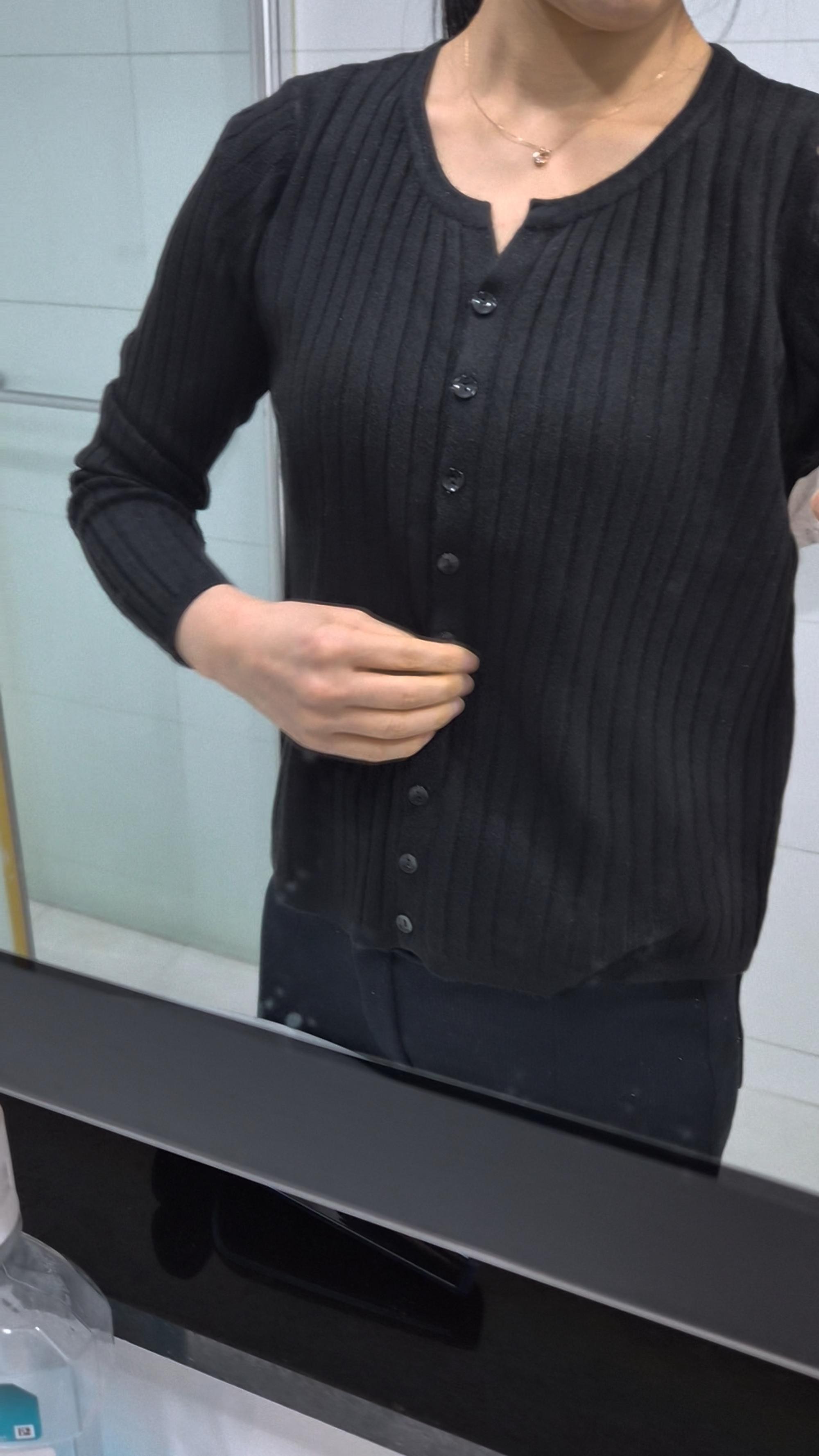 카라도 이쁘고 니트 소재가 까칠하지는 않지만 그렇다고 부드러운 느낌이 아니네요~ 제 취향으로는 속살 그대로 입지는 못하겠어요~ ㅎㅎ 그래도 색상도 이쁘고 사이즈도 프리라 여유있어요.