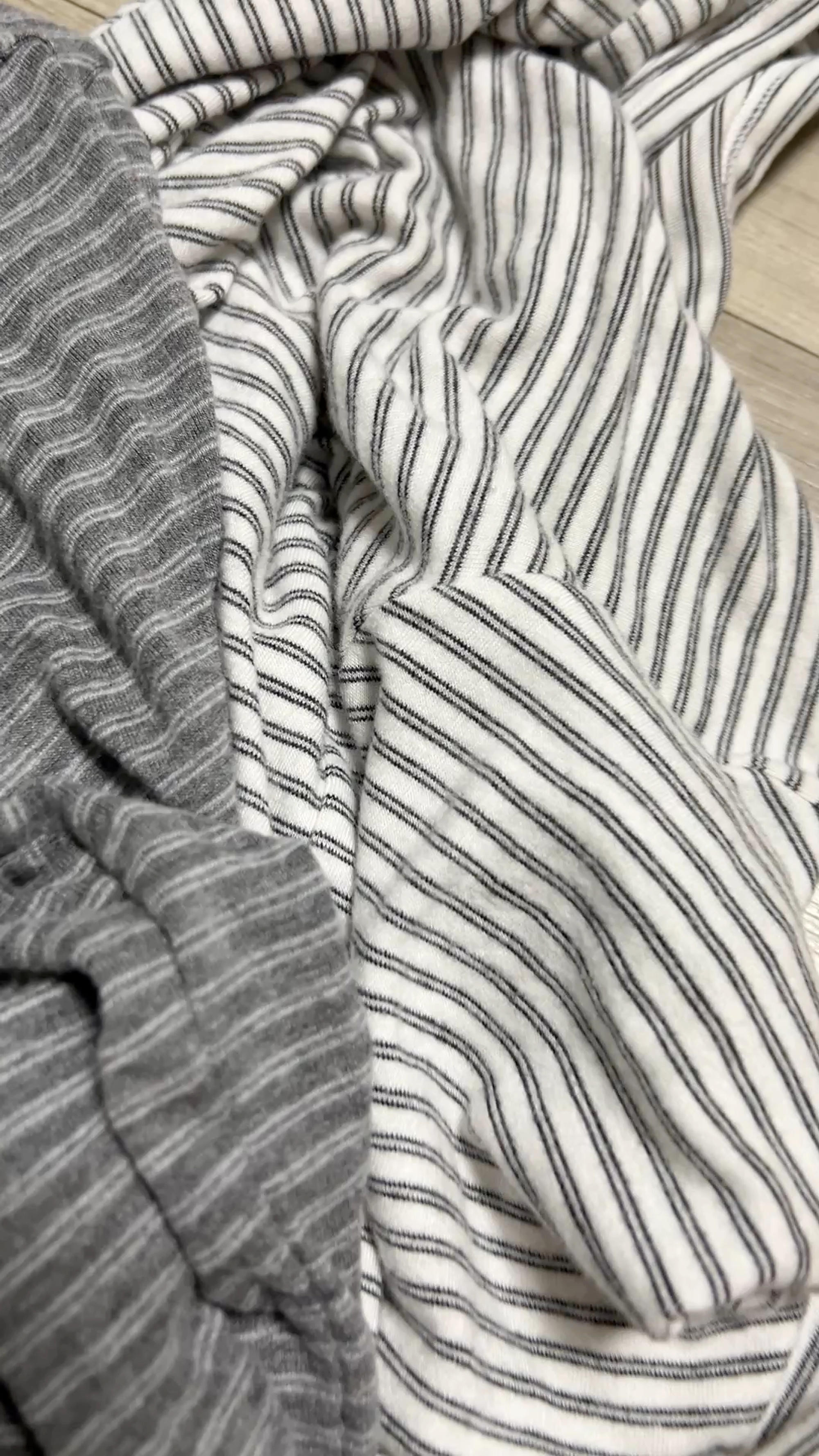 얇고 포근하고 보드러워요. 까끌 거리지 않아 좋아요. 실밥 정리가 좀 안되고 줄무늬가 조금 어긋나 있지만 가격 생각하면 괜찮은편 입니다.
