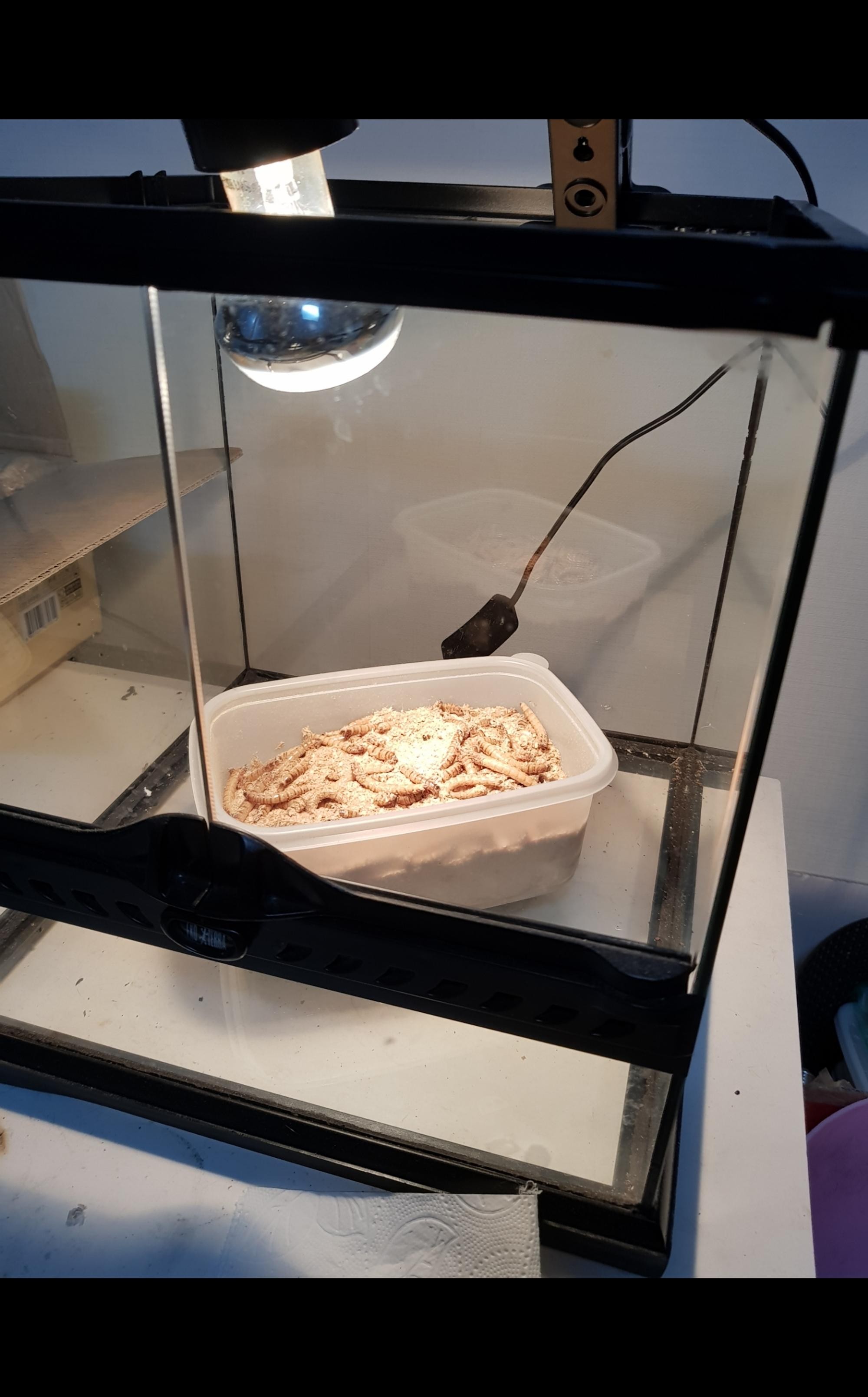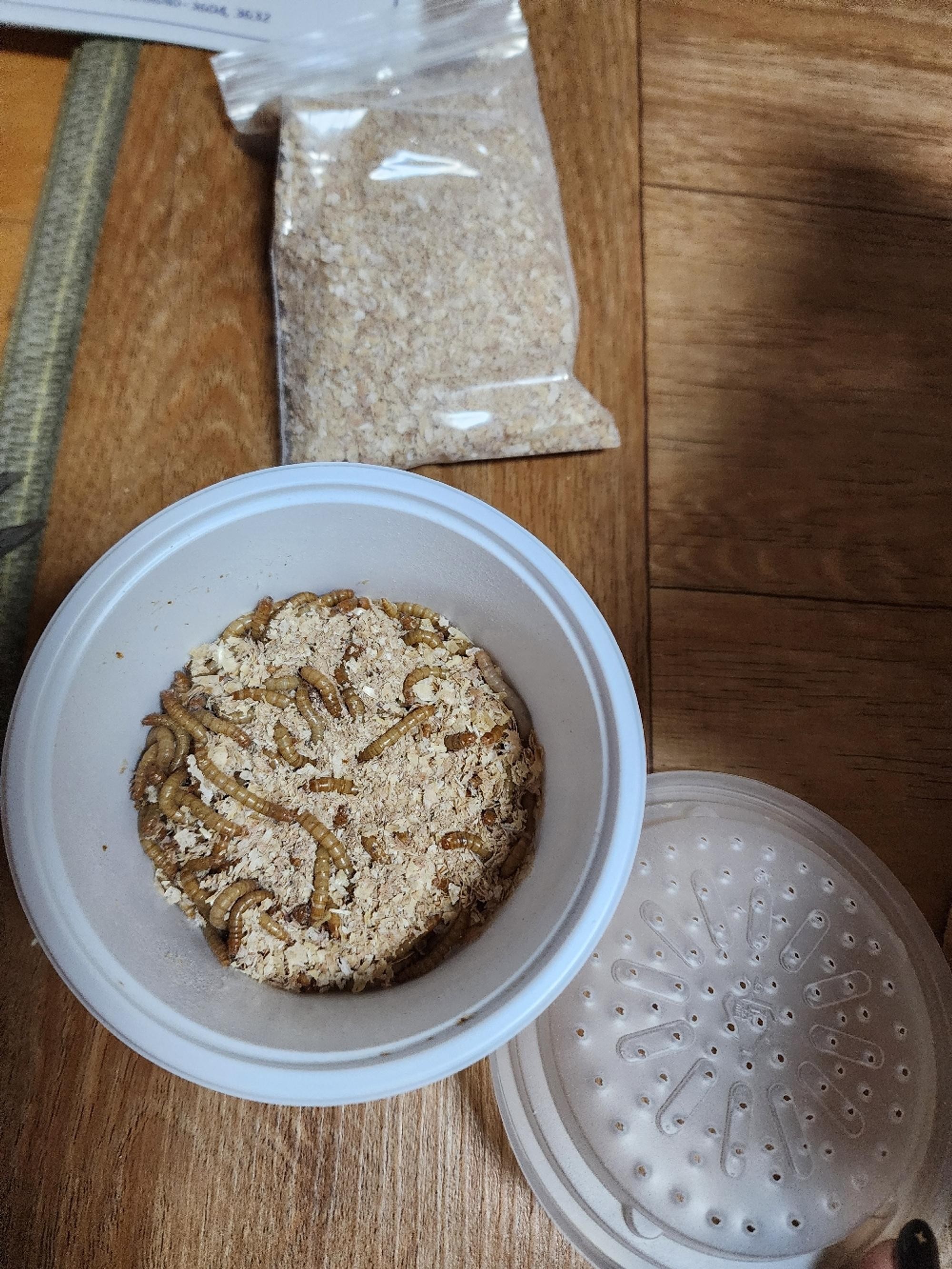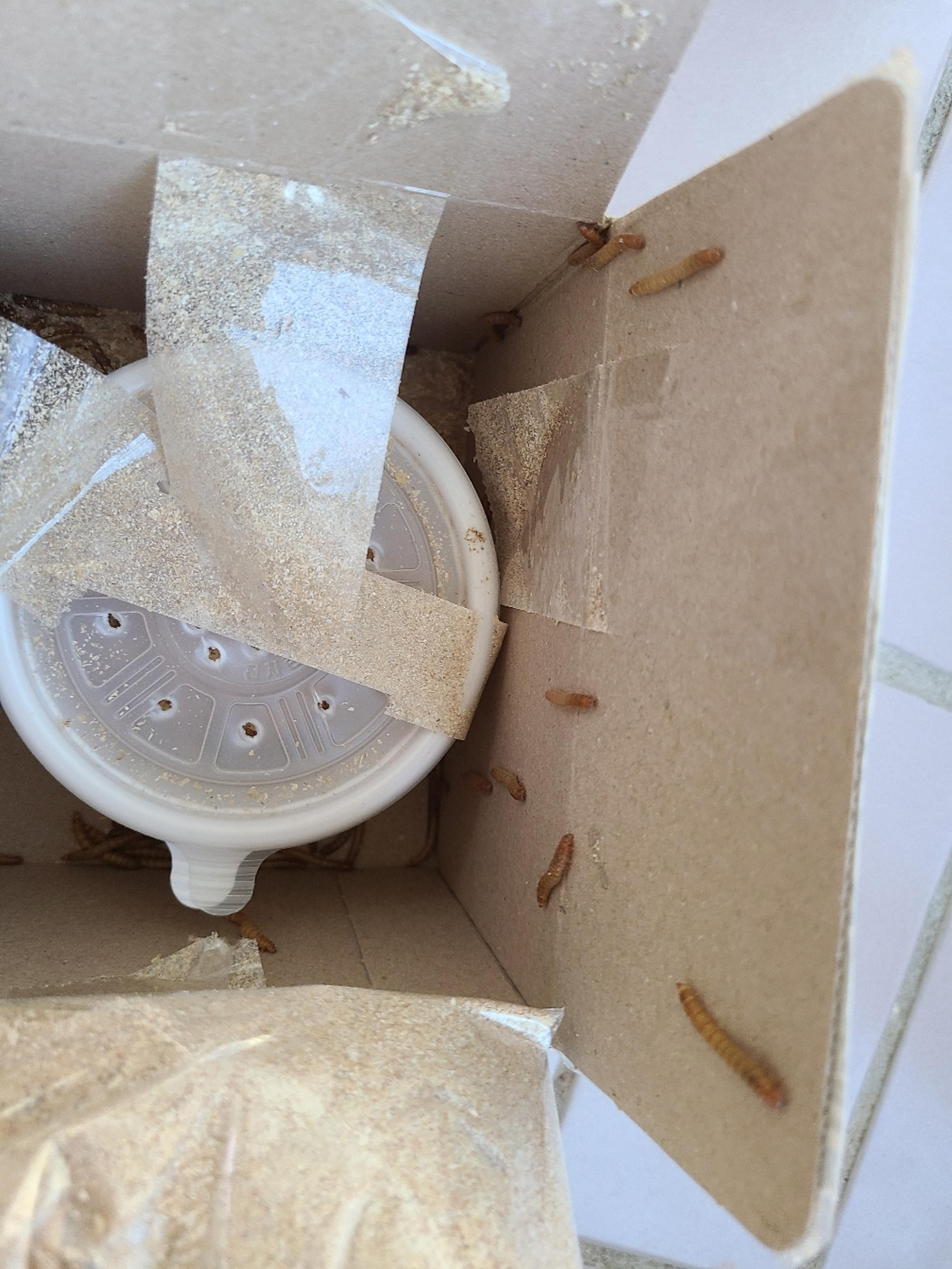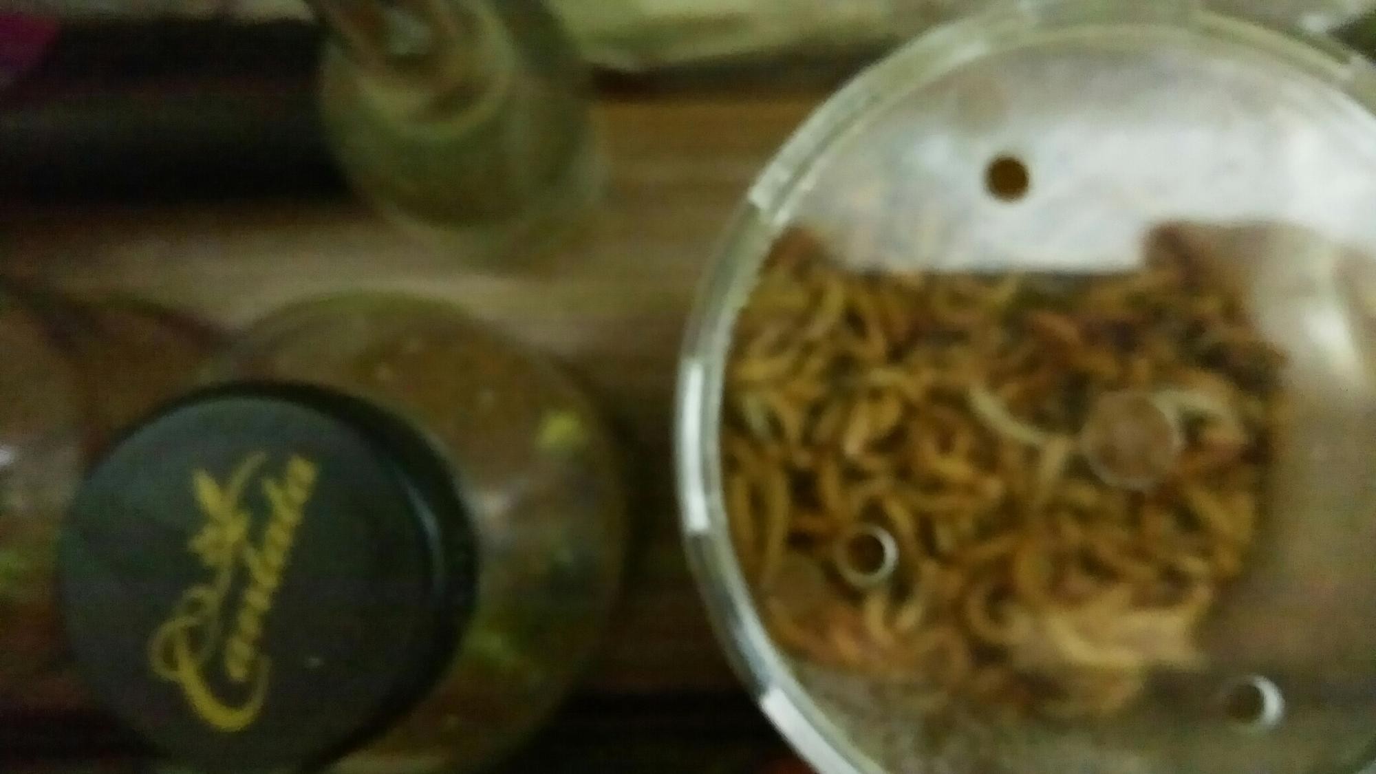 타란튤라 먹이로 구매 오자마자 급여하니 아주 잘 잡아 먹네요 건강하고 통통한 밀웜들이 배송 왔네요