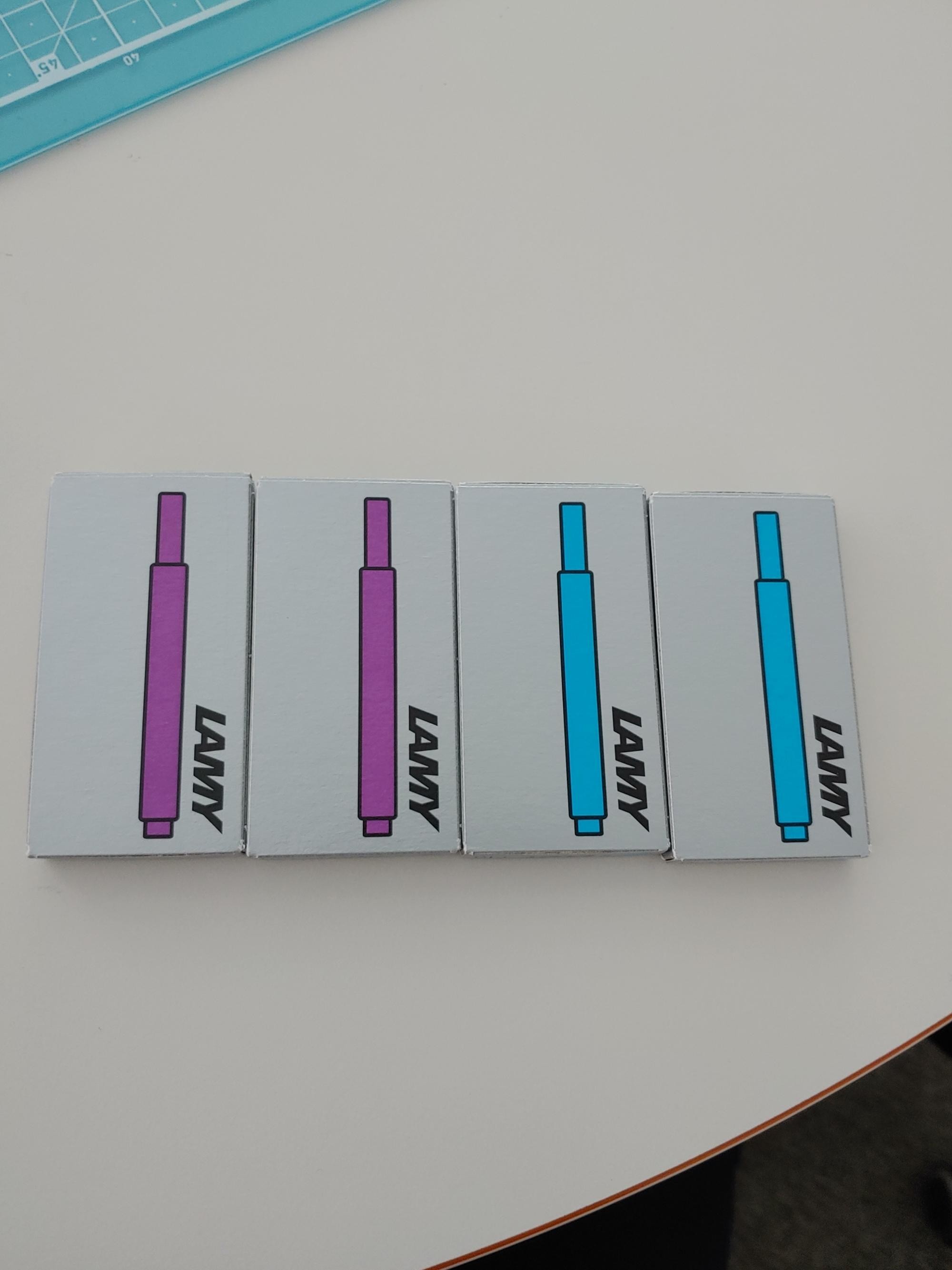 색깔 너무 이쁘네요♥ 카트리지만 구입한지라 케이스가 작을줄 알았는데 상자가 디게 커서 깜짝놀랐어요! 배송 무난했구 원래 블루블랙잉크 쓰다가 바이올렛 쓰는데 진한 보라색보단 그냥 퍼플이거나 조금 붉은 퍼플색인거같아요!