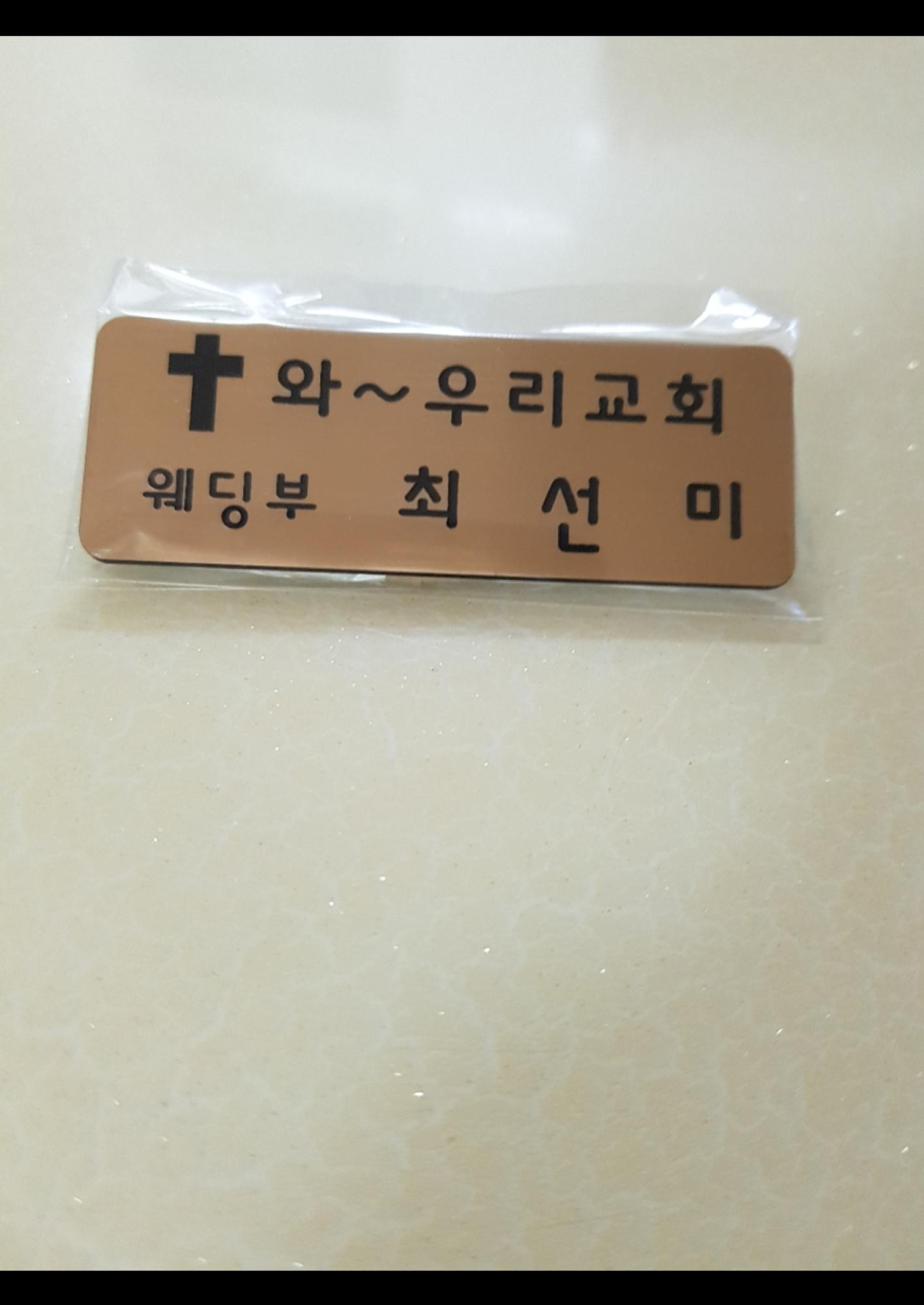 이전에 주문해서 사용했는데 너무 좋아서 새직원 명찰도 만들었습니다.자석이라 옷도 상하지 않고 잘떨어지지 않아 좋아요.