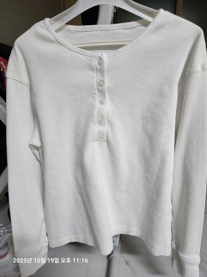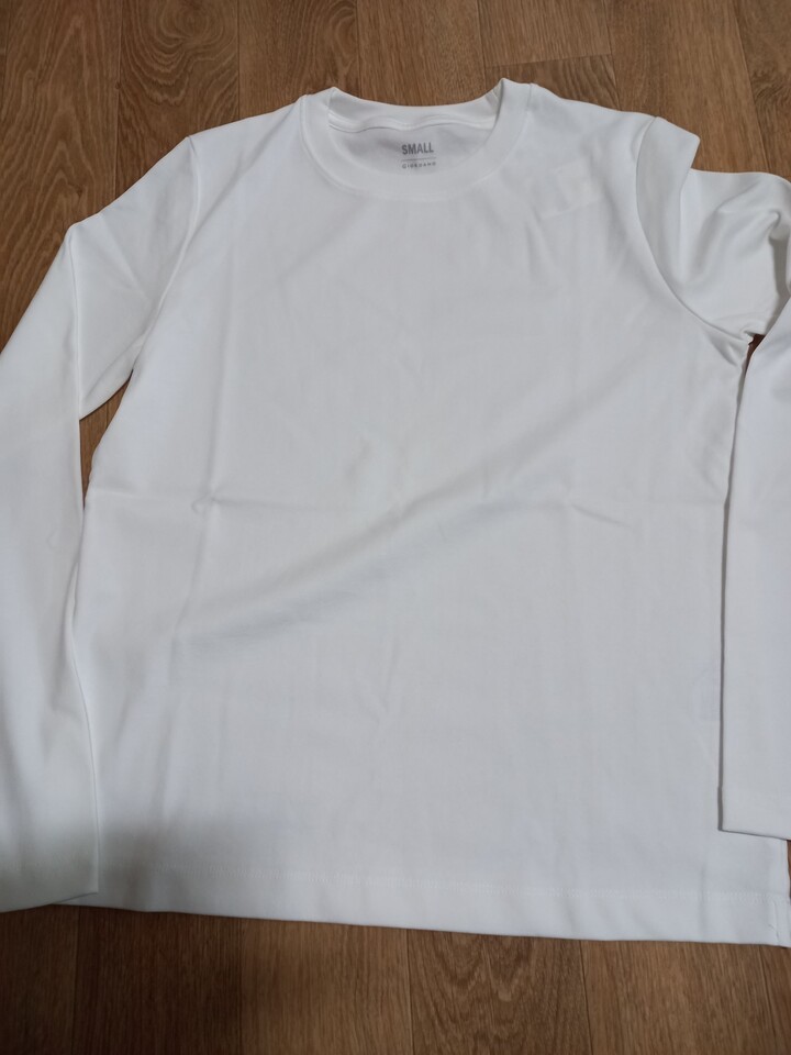 컬러는 미색에 가까운데 편안하고 목도 짱짱해서 잘입을거같아요 길이도 적당합니다 지오다노 티 너무좋아용