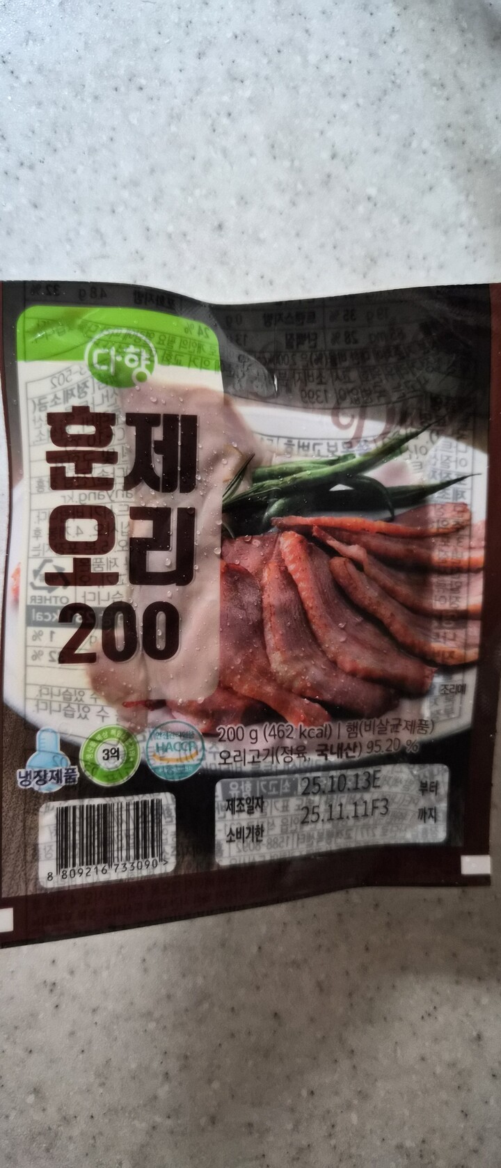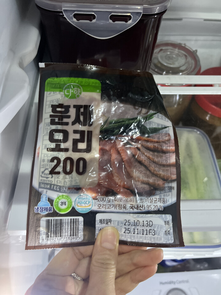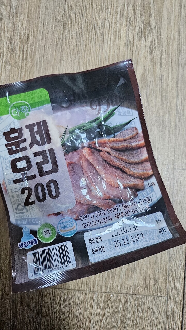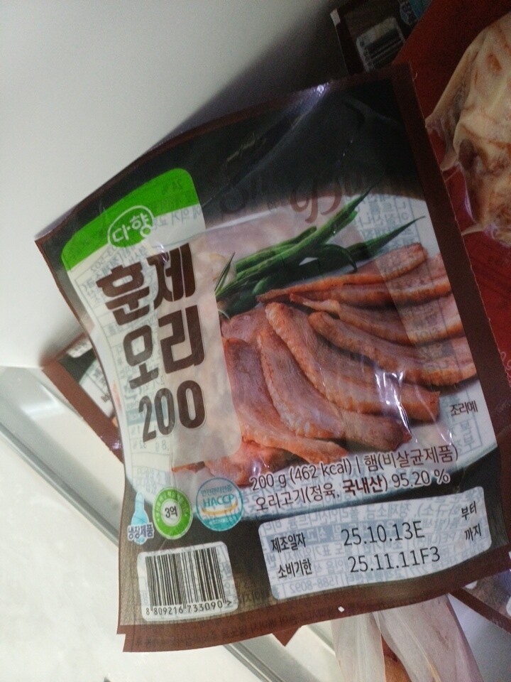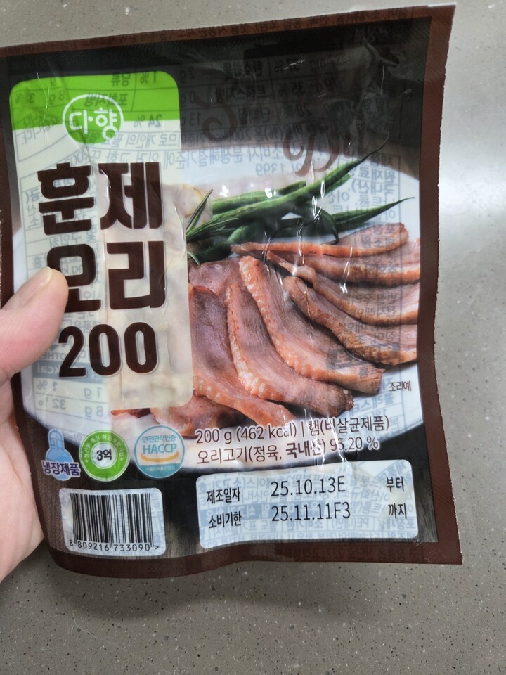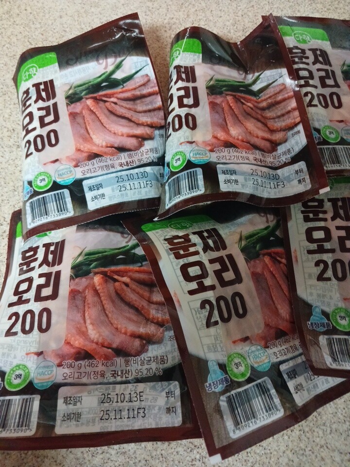 맛있는 훈제오리고기 저렴히 구매했어요 소분되어있어서 편해요