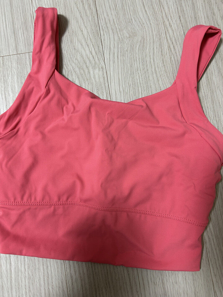 지금입기엔 재질이 좀 두꺼운데 그래도 이거 하나만 입으면 되니까 괜찮은거 같아요. 패드부착형으로도 나오면 좋겠어요.