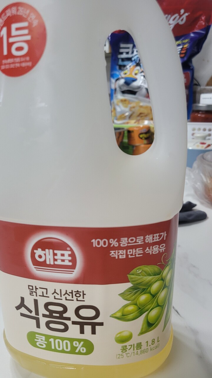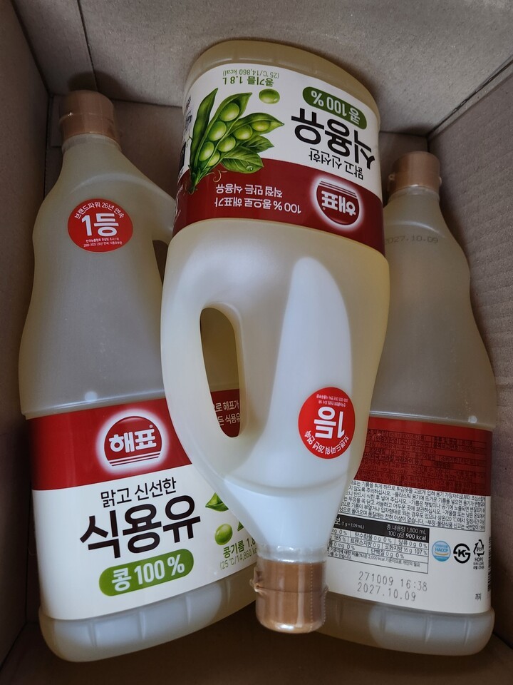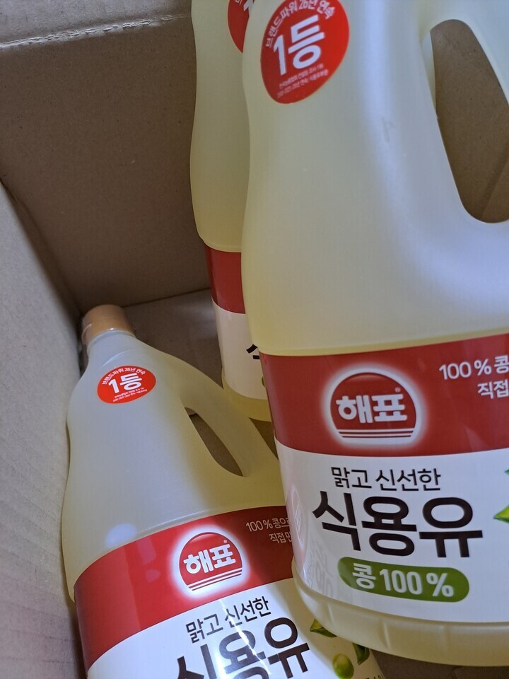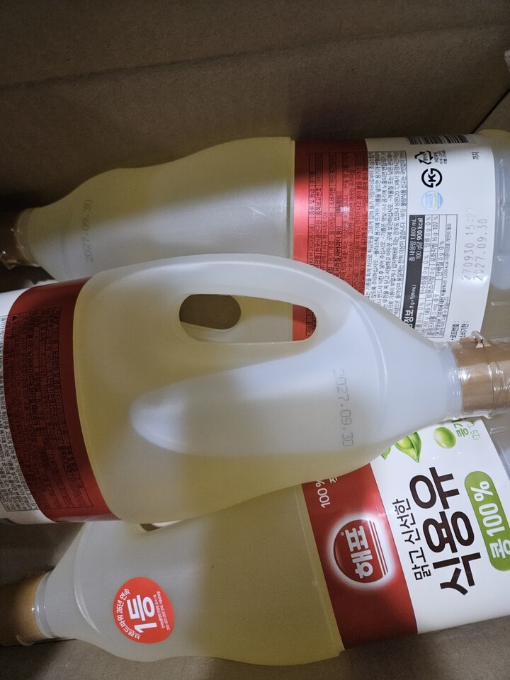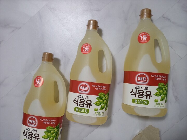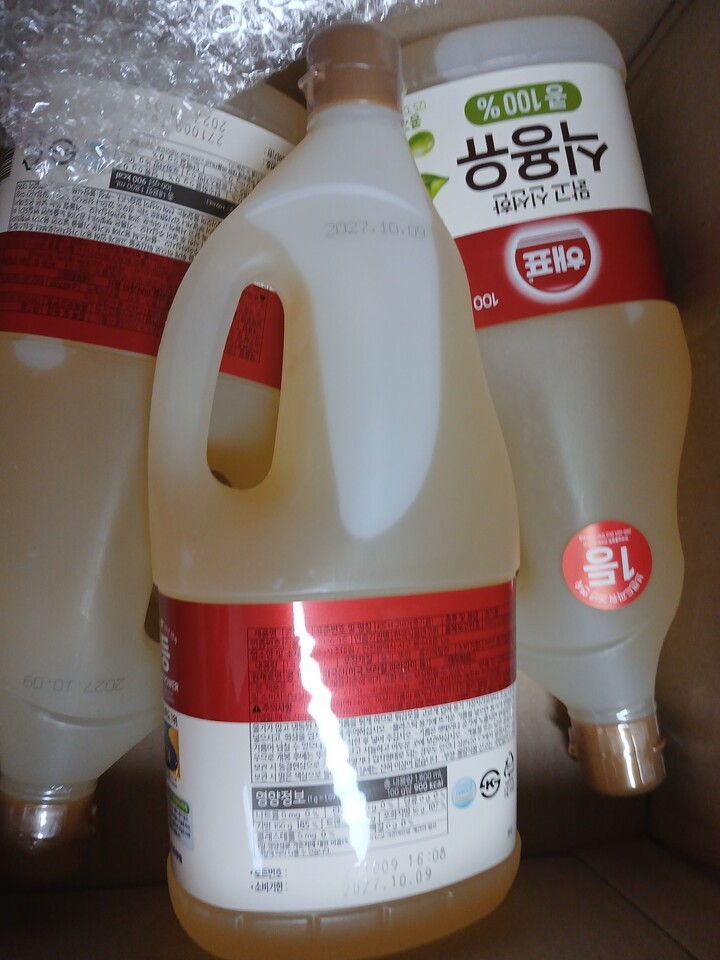 식용유 뚜껑에 비닐이 하나는 거의 벚겨져왔네요