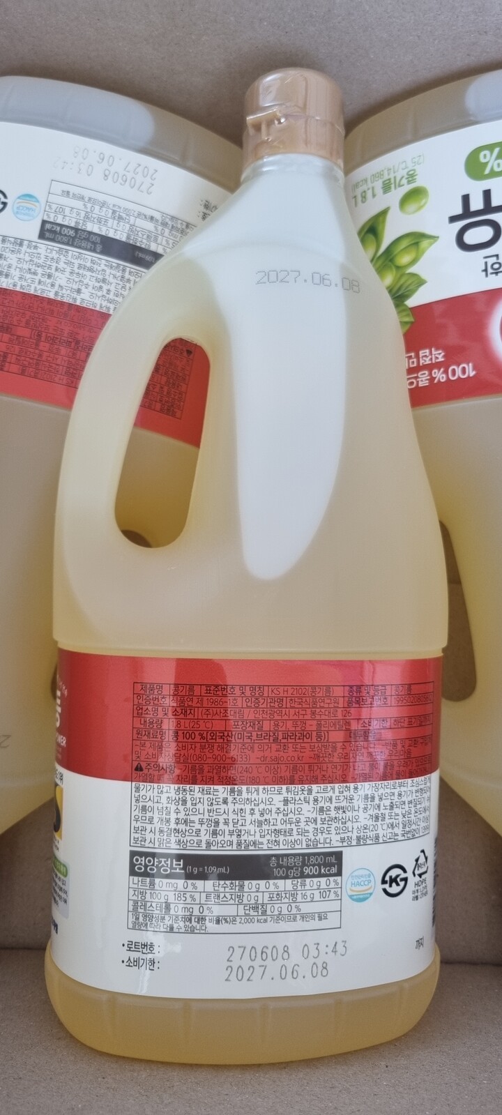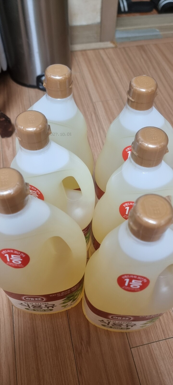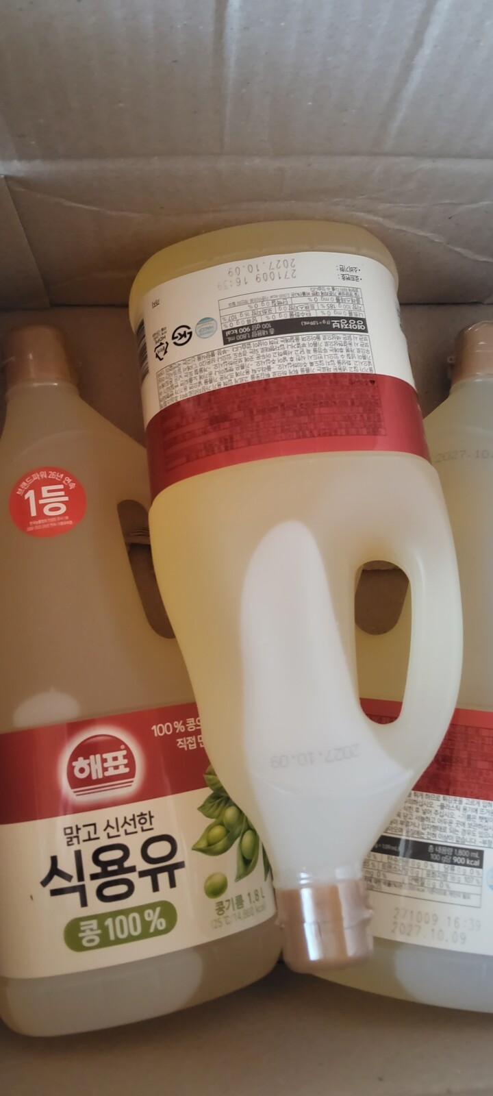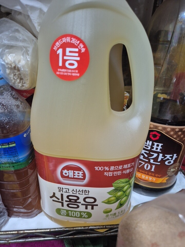 식용유 뚜껑에 비닐이 하나는 거의 벚겨져왔네요