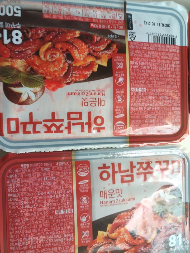 쭈꾸미가 진짜많네요 팩이작아서 실망했는데 내용물보고 감동~