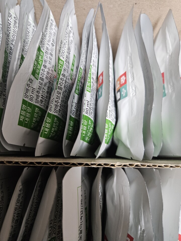 오자마자 먹어봤어요~맛이 깔끔하고 비리지 않고 좋아요~양은 조금 적은듯 하지만, 성분이 좋아서 꾸준히 먹어보려구요~한가지 아쉽다면 택배박스채로 놓고 먹어야하는게 좀 찝찝해요~속쓰림이 좋아졌으면 좋겠어요~