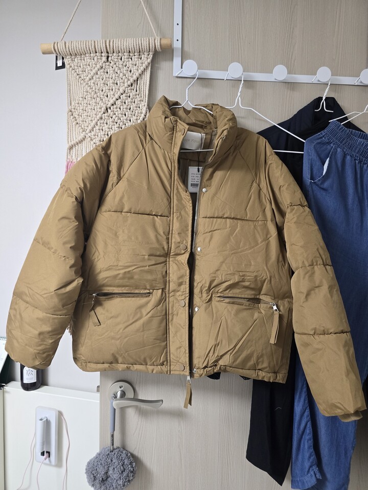 충전재 때문에 입으니 좀 부해 보이지만 따뜻하게 입을거 같아요. 후드모자는 떼고 입는게 나을듯합니다.