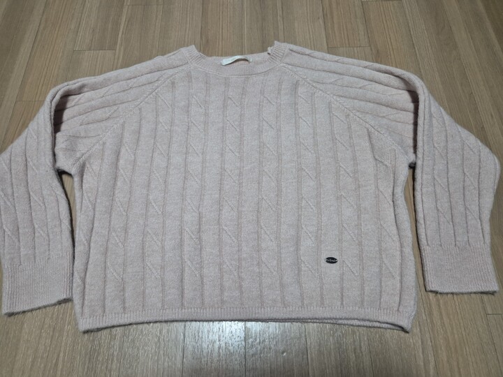 트위스트 래글런 라운드 핑크 니트 두께감도 있고 기장은 짧게 나와 스커트든 바지든 잘어울리고 오버핏으로 통은 크게나와 편하게 입을수 있어요 색감은 좀더 연한 우유핑크였음 했는데 톤다운된 핑크여서 조금 아쉬워요~
