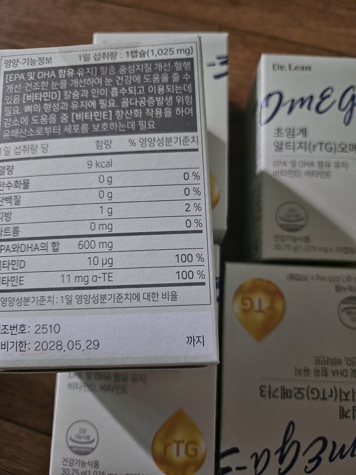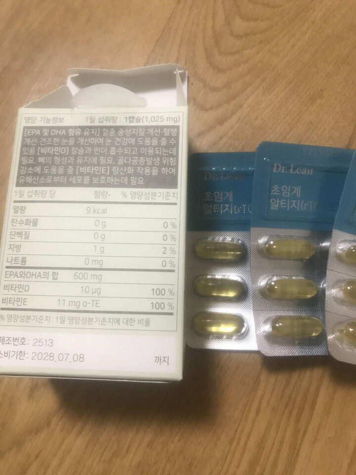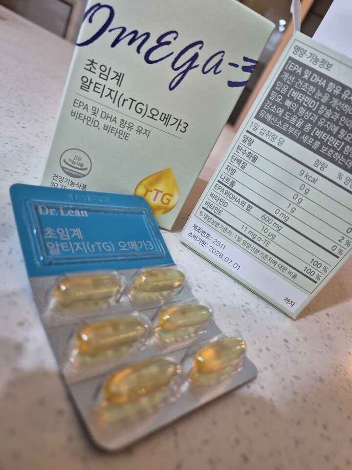 오메가3 다른 제품 먹다가 안맞아서 다시 닥터린꺼 구입해서 먹어요.