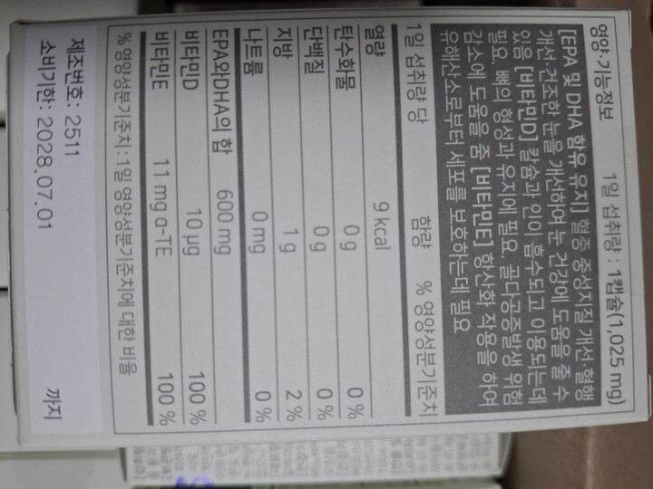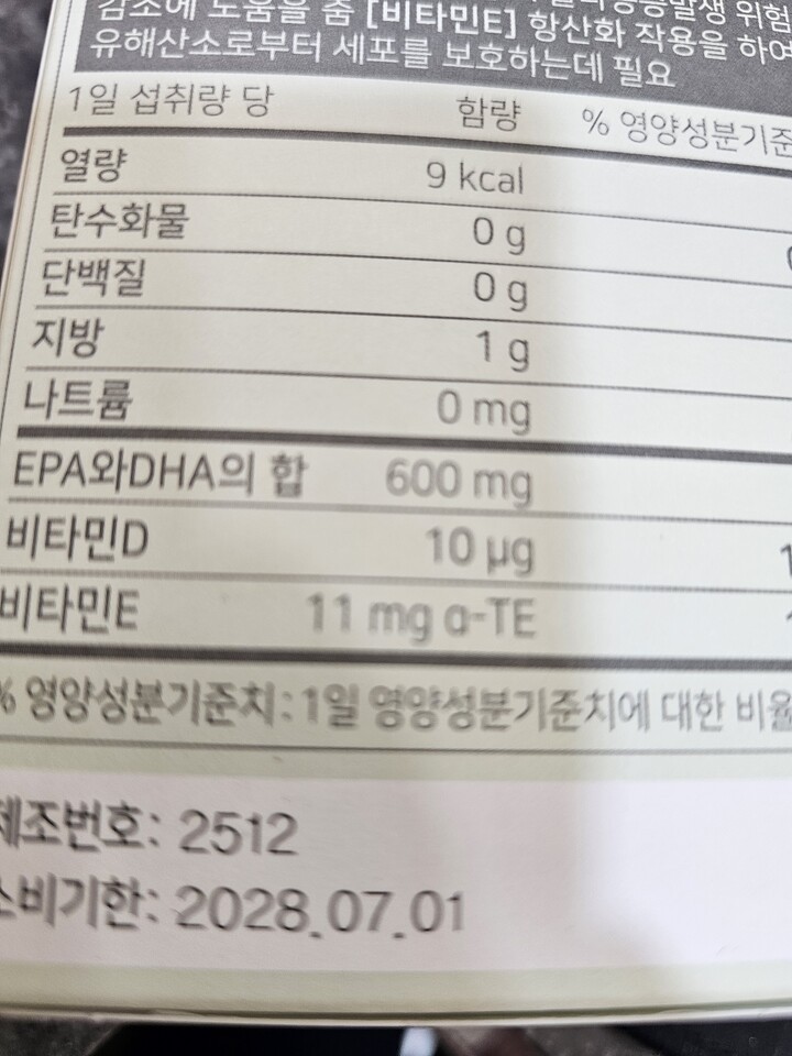 오메가3는 꼭 챙겨 먹고 있어요. 방송에서 효과없네 어쩌네 해도 저는 먹을때 안먹을때 차이가 확 나서 일단 필수 챙겨 먹는 영양제 입니다.