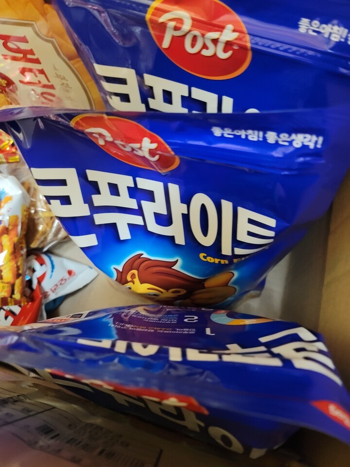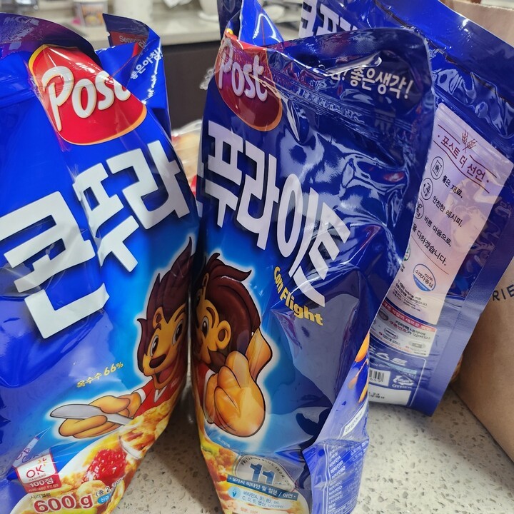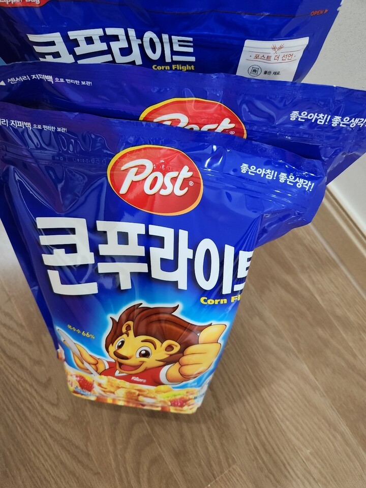 콘푸라이트 바쁜 아침에 아이 간식에 너무 좋습니다. 여기서만 계속 구매합니다. 저렴하고 사은품까지