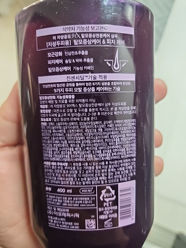 전에 몇년간 쭉 쓰던 자양윤모. 최근 몇년 다른 탈모 샴푸들 쓰다가 돌아왔어요.머리 덜 떡지고 좋네요.