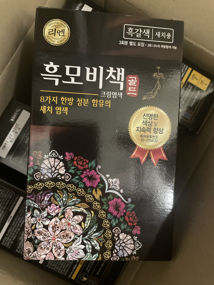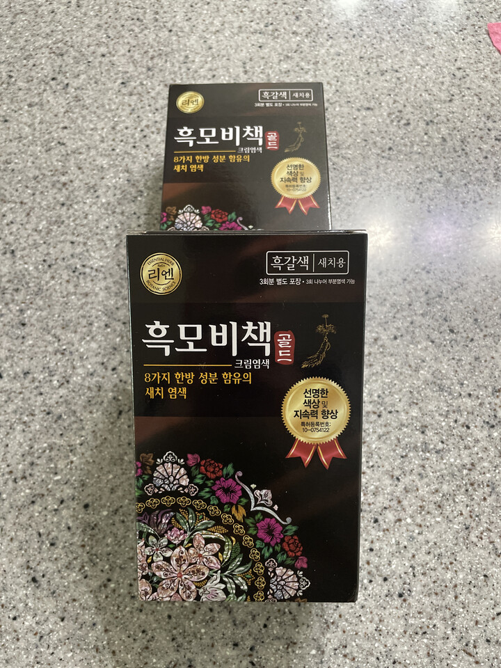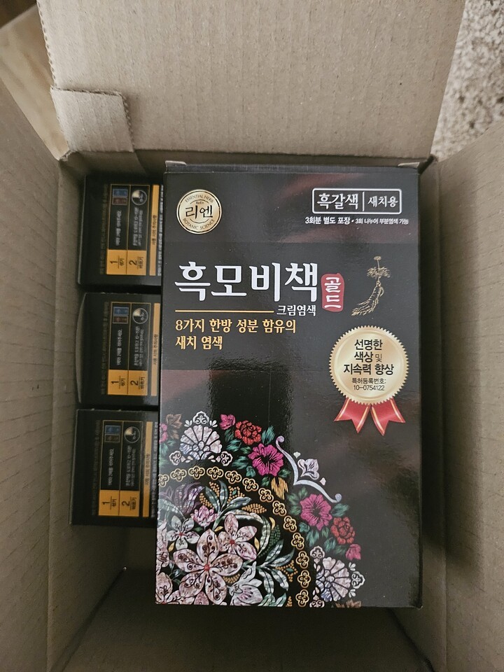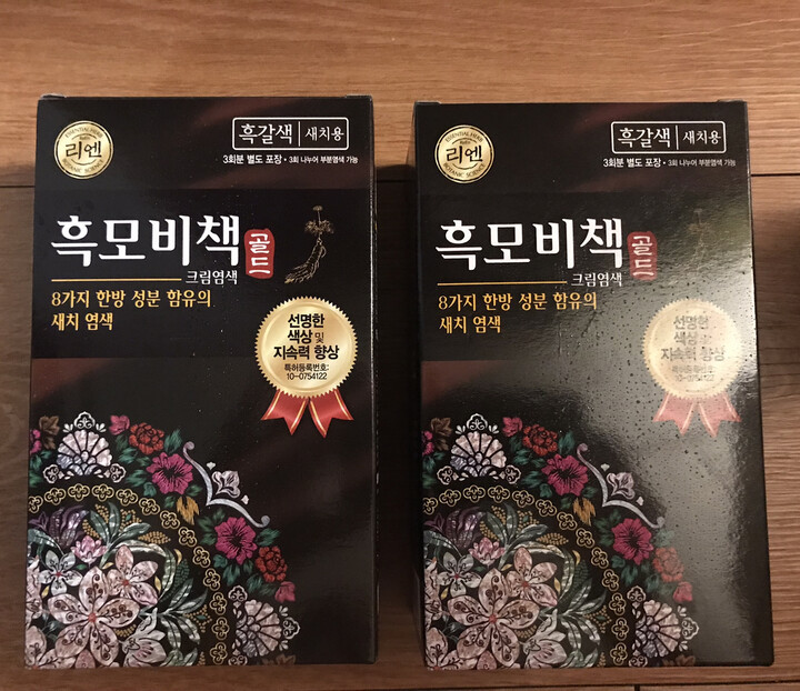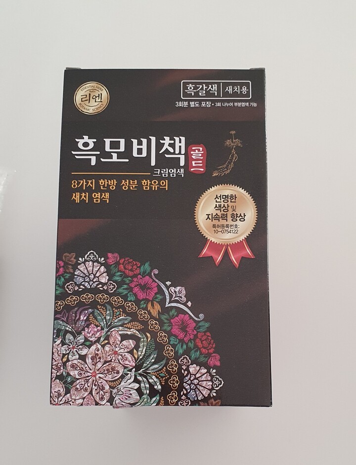 리엔 흑모비책 골드 흑갈색 염색도 잘되고 할인해서 구매해 더 좋아요