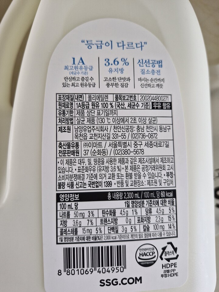 체세포수 1등급이 아니라 저렴한 건지 모르겠지만 저렴해서 추가 구매했습니다