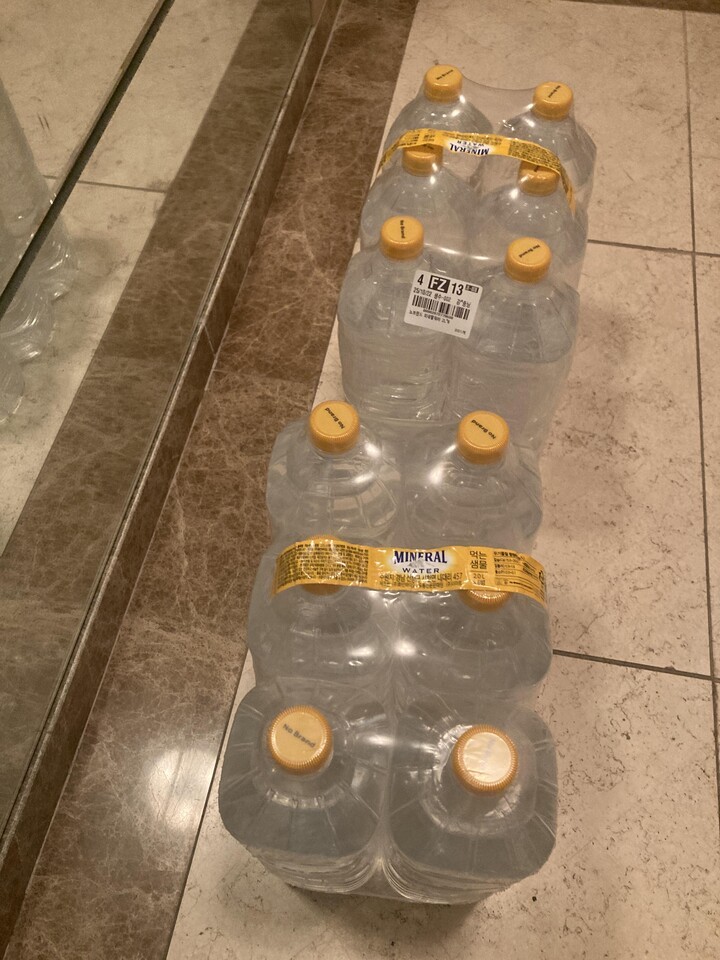 마시는 물은 보리차 끓여 마시고 커피나 콤부차 타 마실 때는 생수 몇 병씩 사서 마시고 있어요.