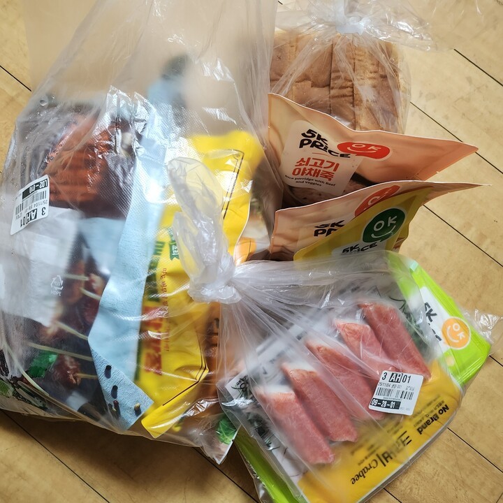 배달시간 지정인데 왜 늦는지 모르겠지만 냉동식품 녹지않고 잘 도착하긴 했네요.