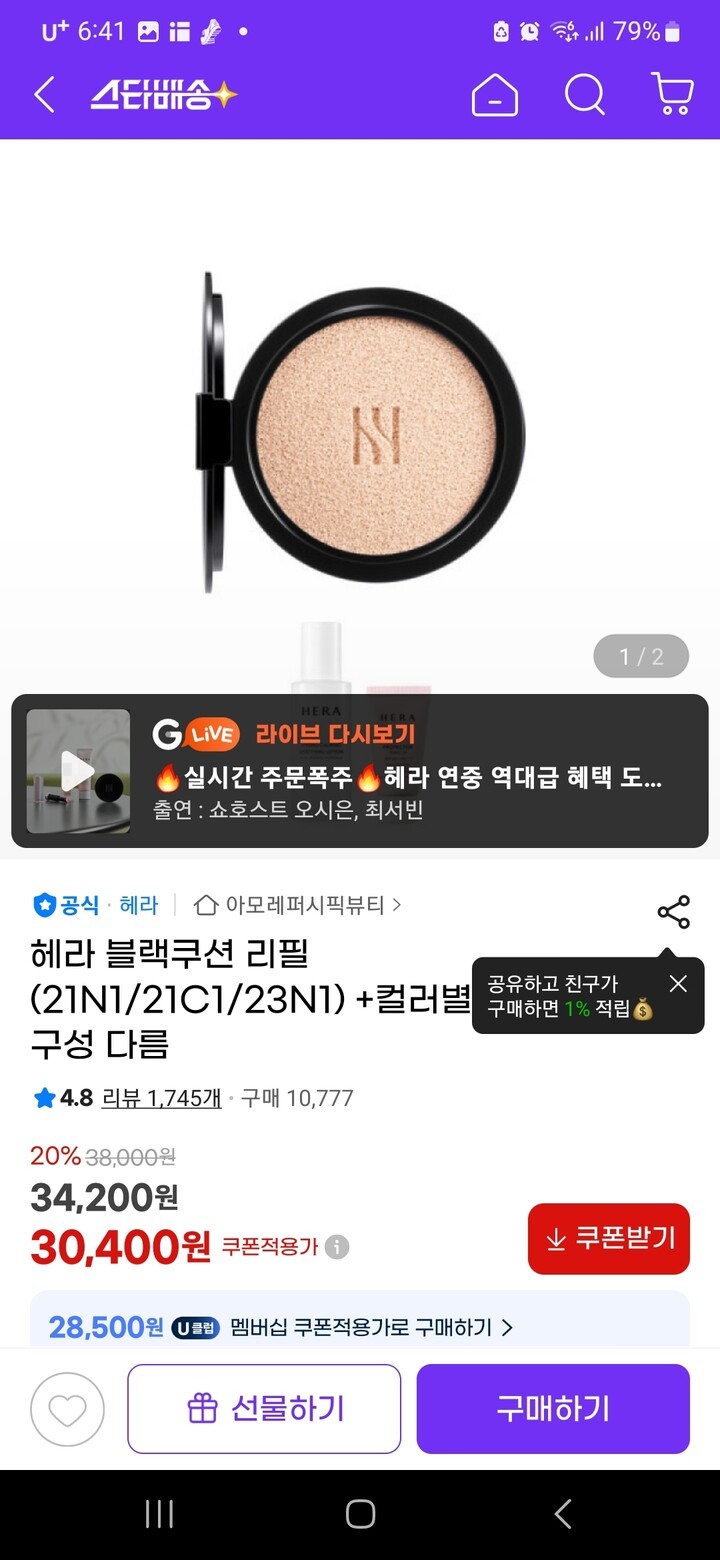 판매처 헤라 평점 4.8점 리뷰 1,639개