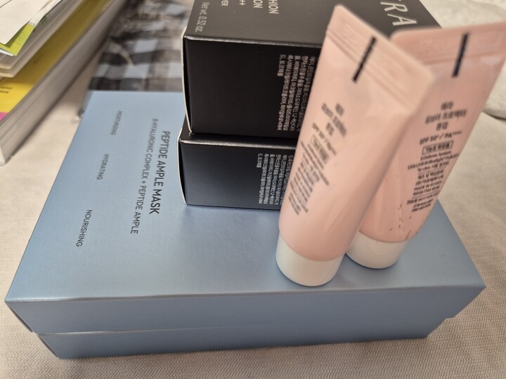수부지인데 너무 매트하지도 않고, 자연스럽게 잘 맞아서 꾸준히 사용하고 있어요. 증정품으로 톤업선크림에 팩까지 받아서 더 좋네요.