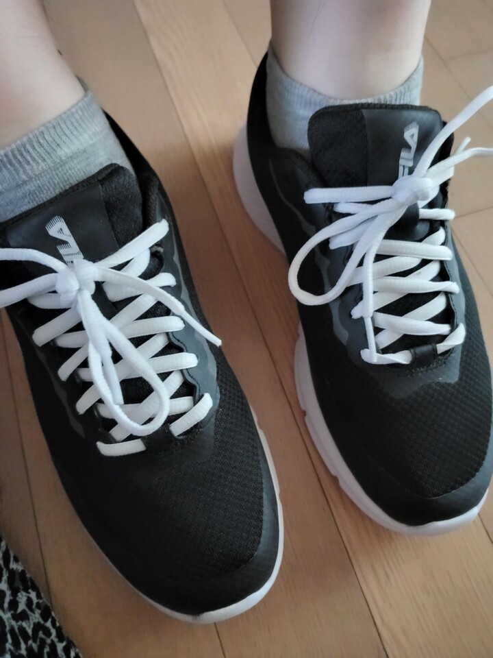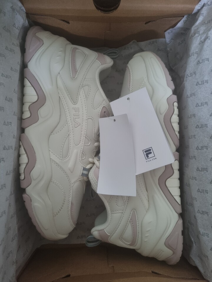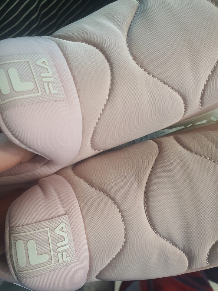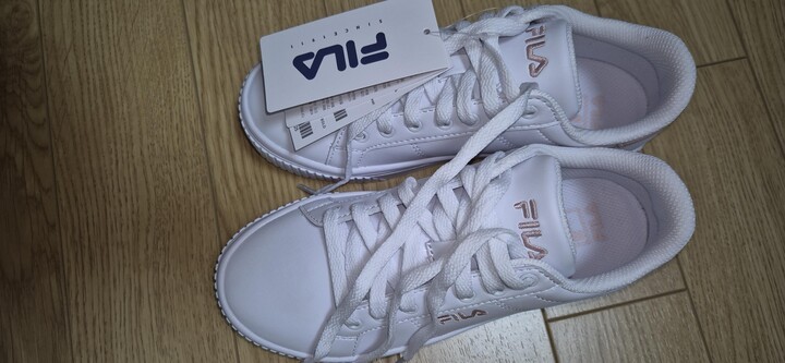 운동화 끈이 없는 운동화를 사고 싶었는데, 마침 요즘 잘 나가는 휠라에서 겟 했네요^^ 발에 착 감기고 생각보다 예뻐서 좋았어요~