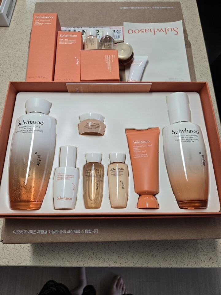 배송은 하루만에 왔어요. 라이브 혜택으로 사은품도 10월 중순에 받을 수 있어서 좋은 것 같습니다. 올 추석선물은 설화수로 해결했습니다! 지함보 포장이 생각보다 괜찮았어요.