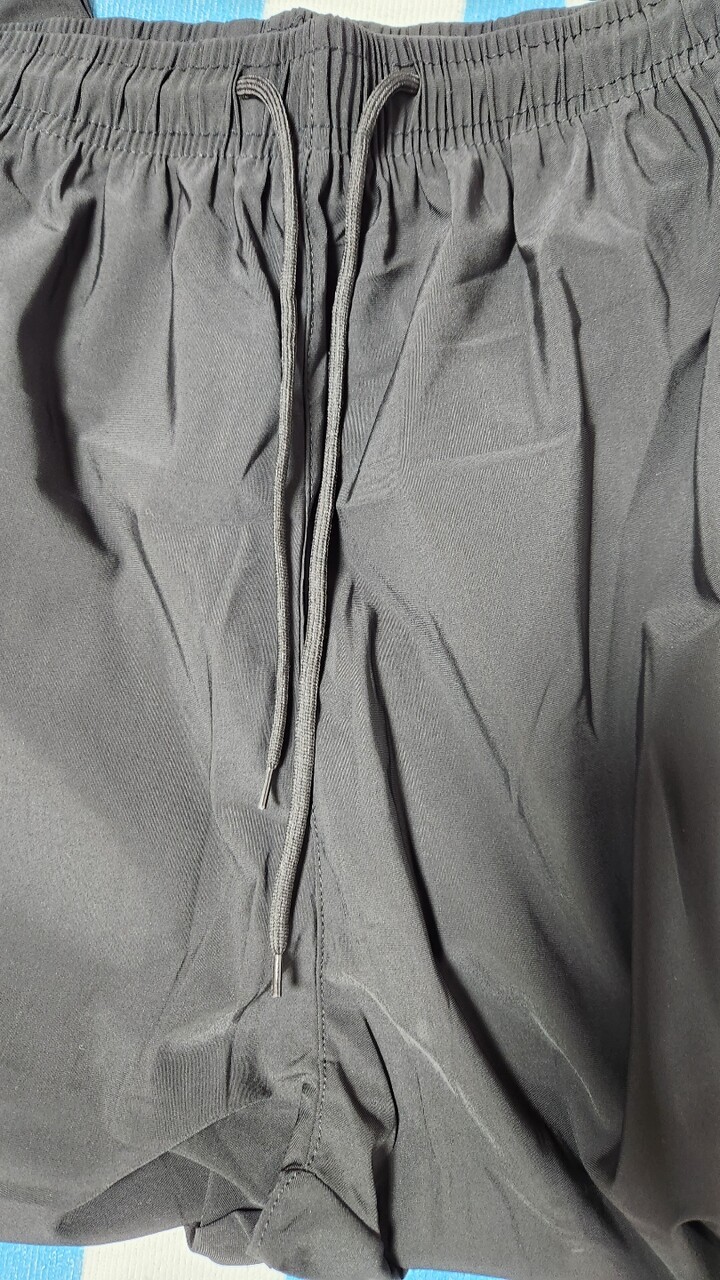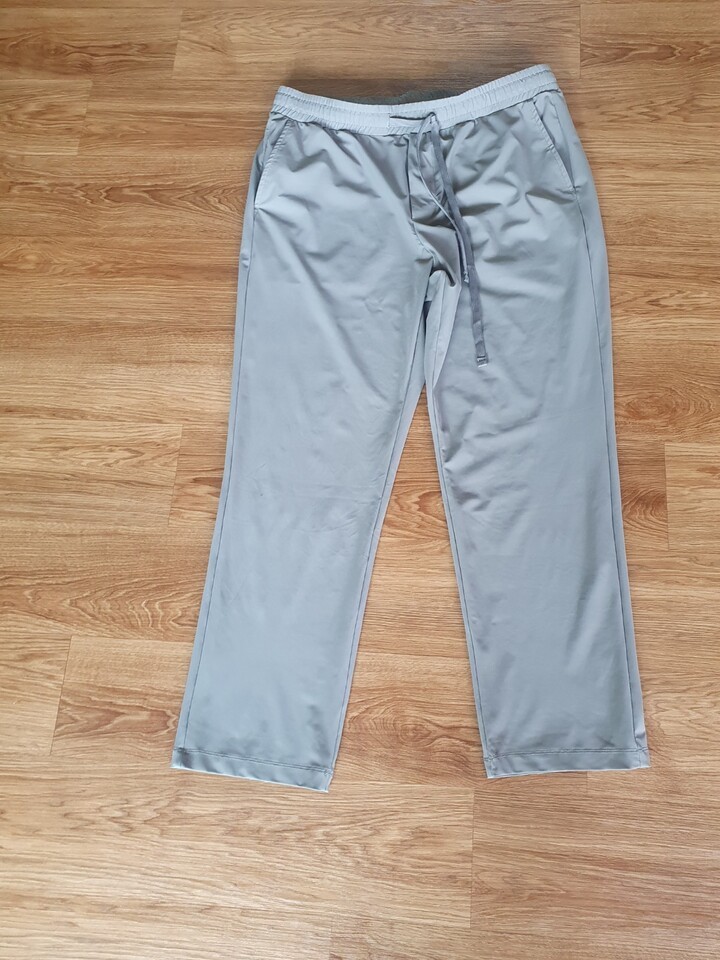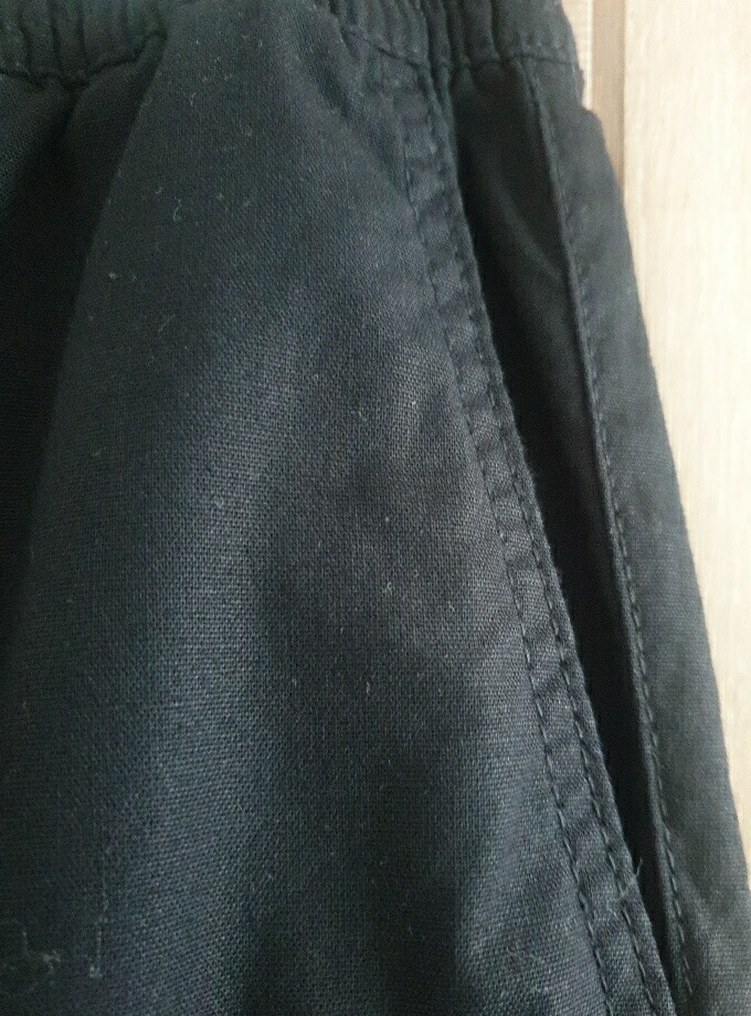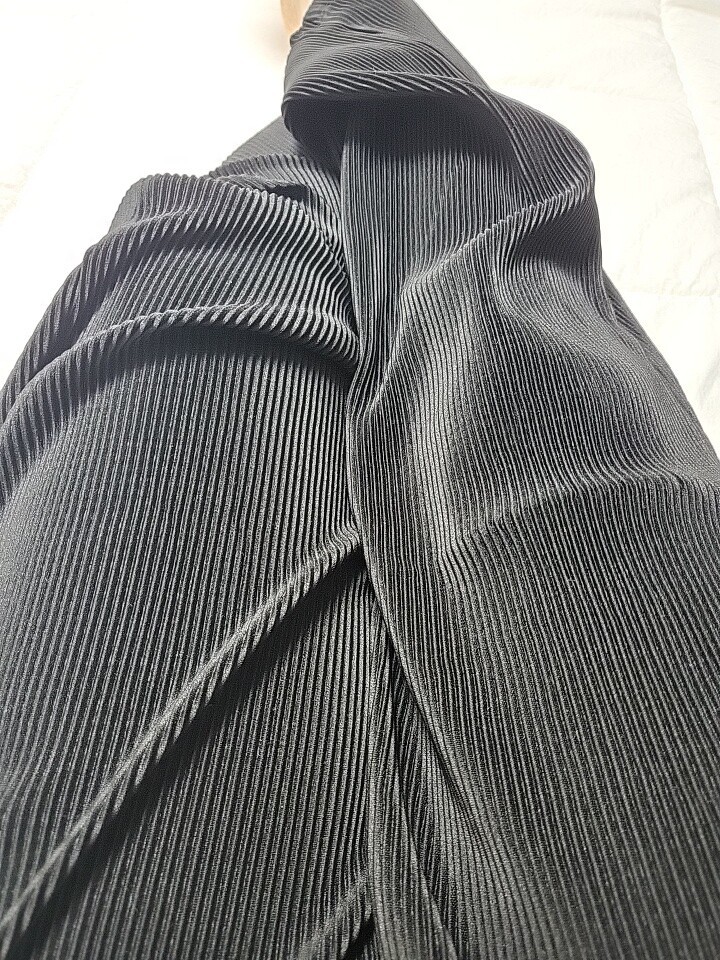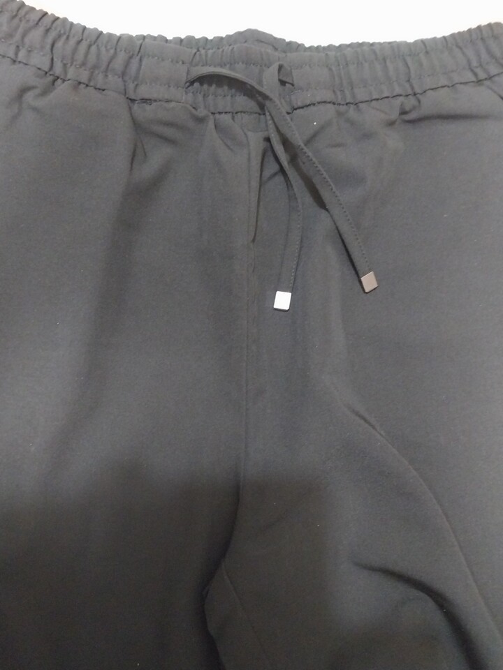 신축성이 좋고 구김이 없는 소재입니다. 블랙 사이즈가 없어서 사이즈 있는 색상으로 샀는데 이것도 괜찮네요. 허리에 조임 끈이 있어서 좋아요.