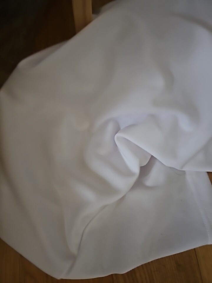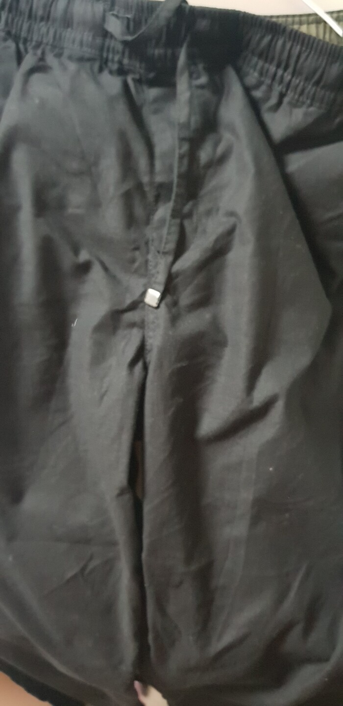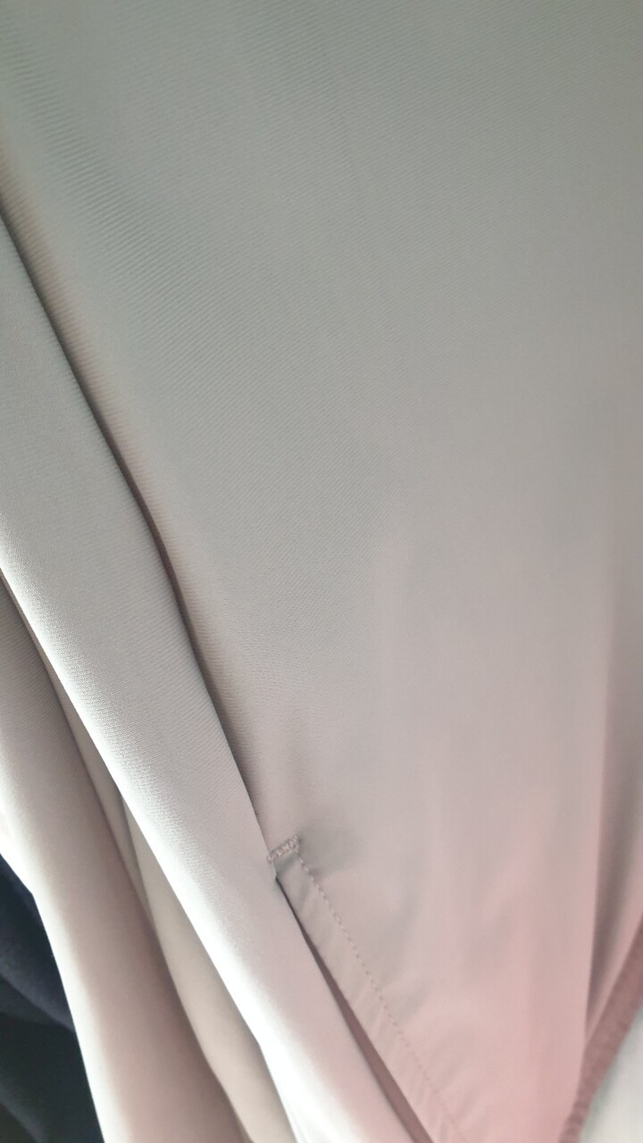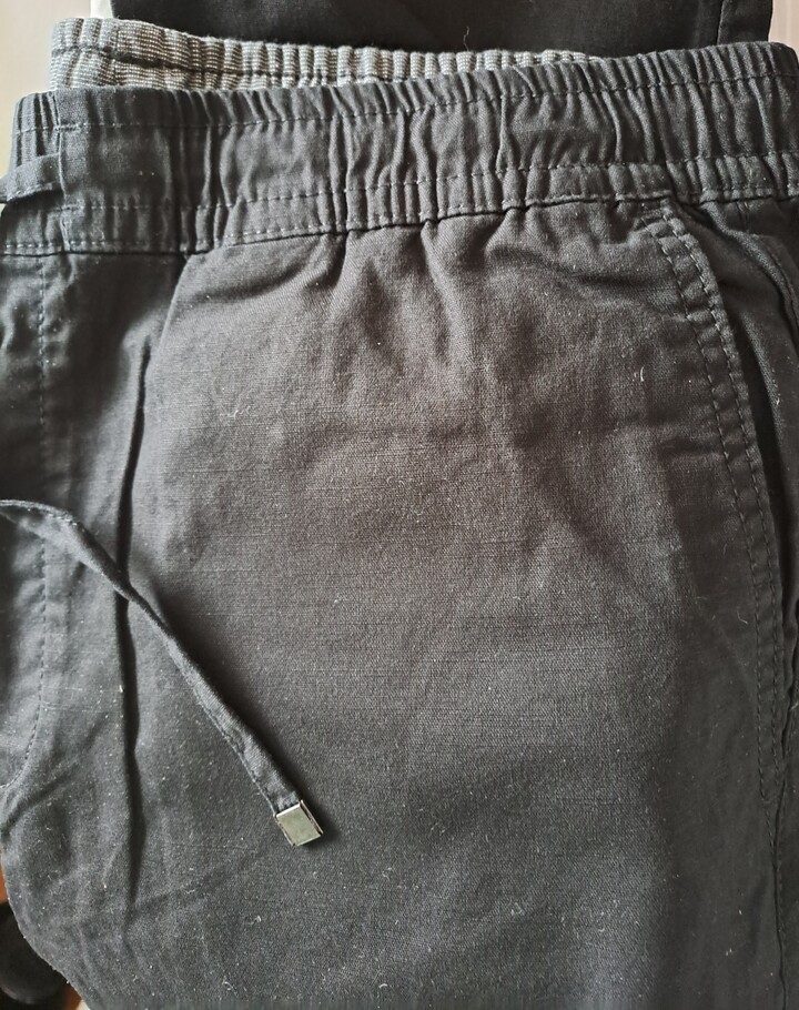 신축성이 좋고 구김이 없는 소재입니다. 블랙 사이즈가 없어서 사이즈 있는 색상으로 샀는데 이것도 괜찮네요. 허리에 조임 끈이 있어서 좋아요.